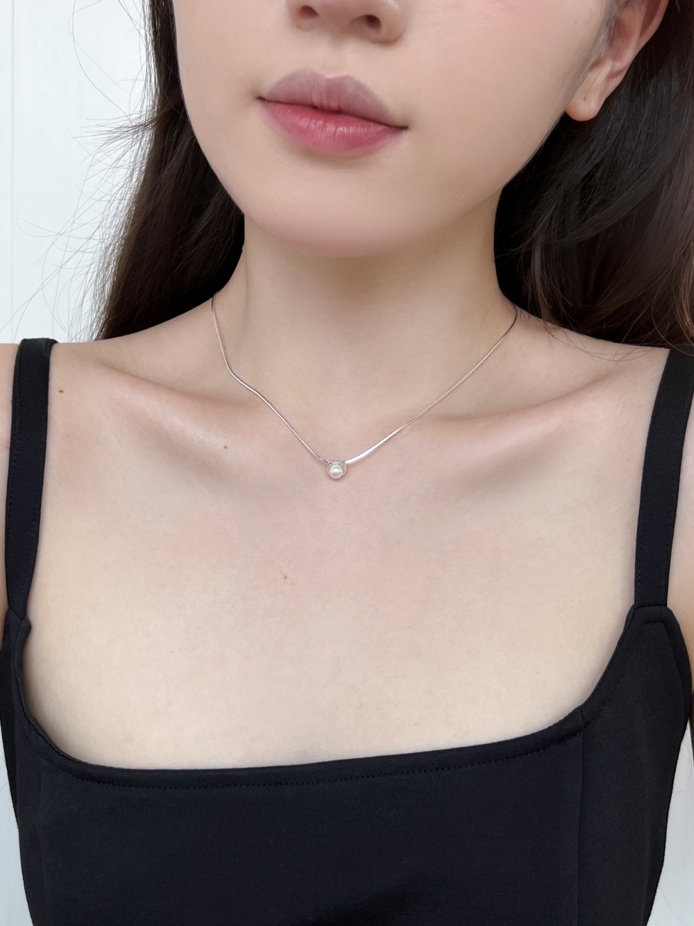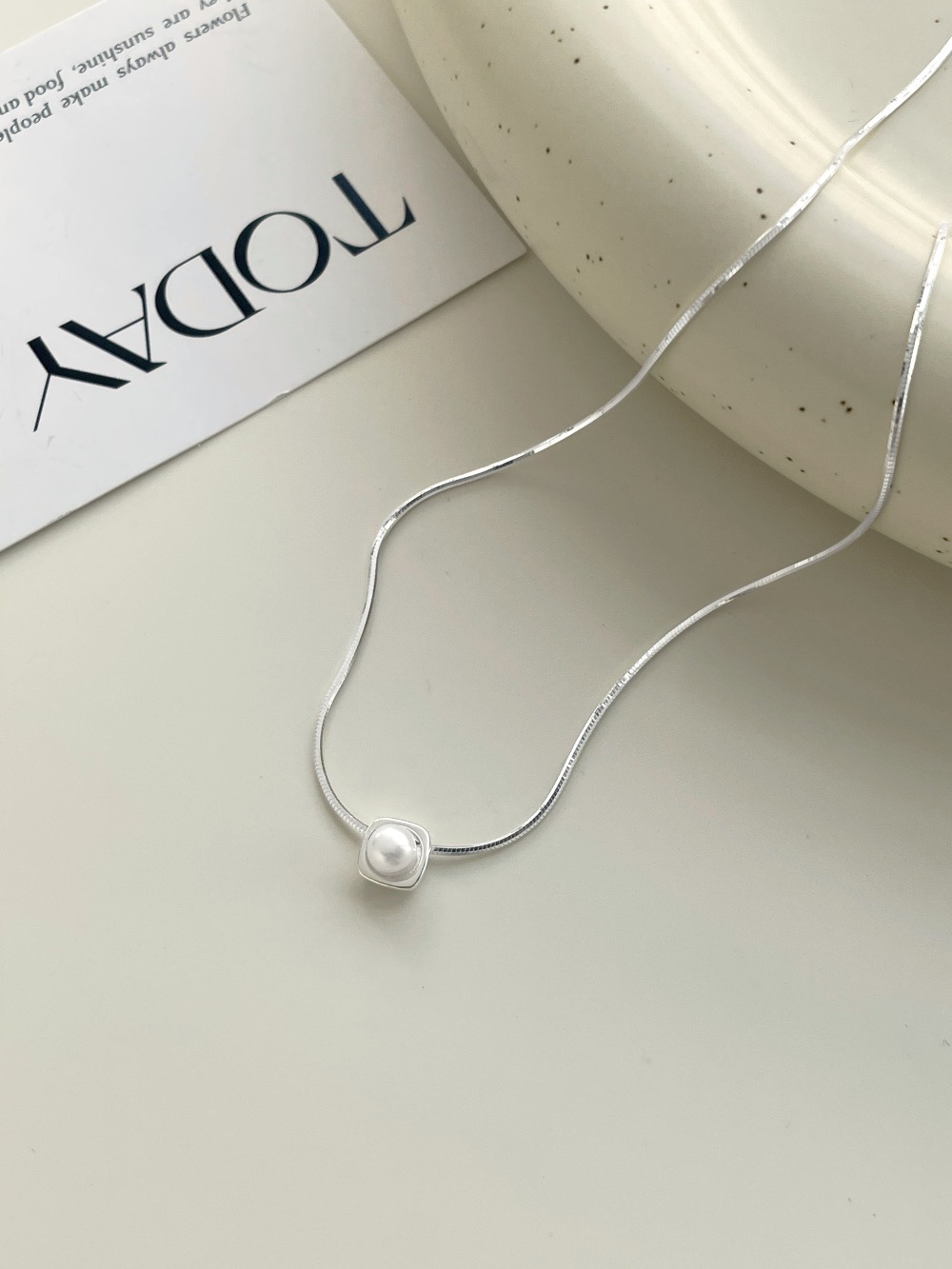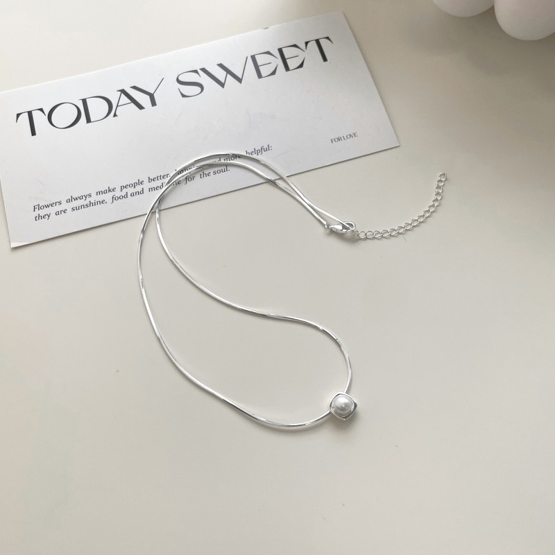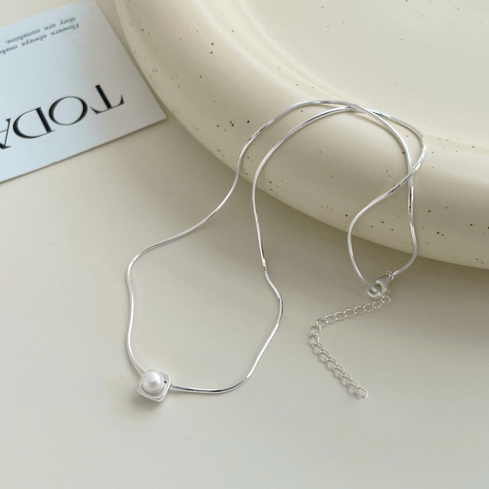 ins风 s925银高级珍珠迷你方形项链锁骨