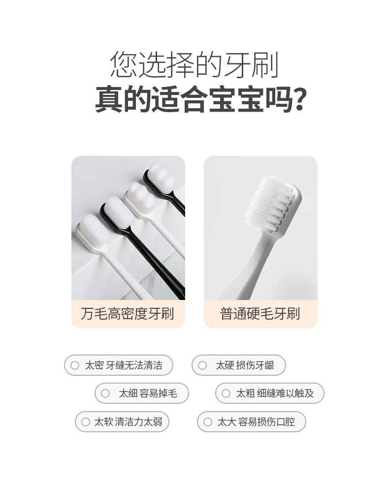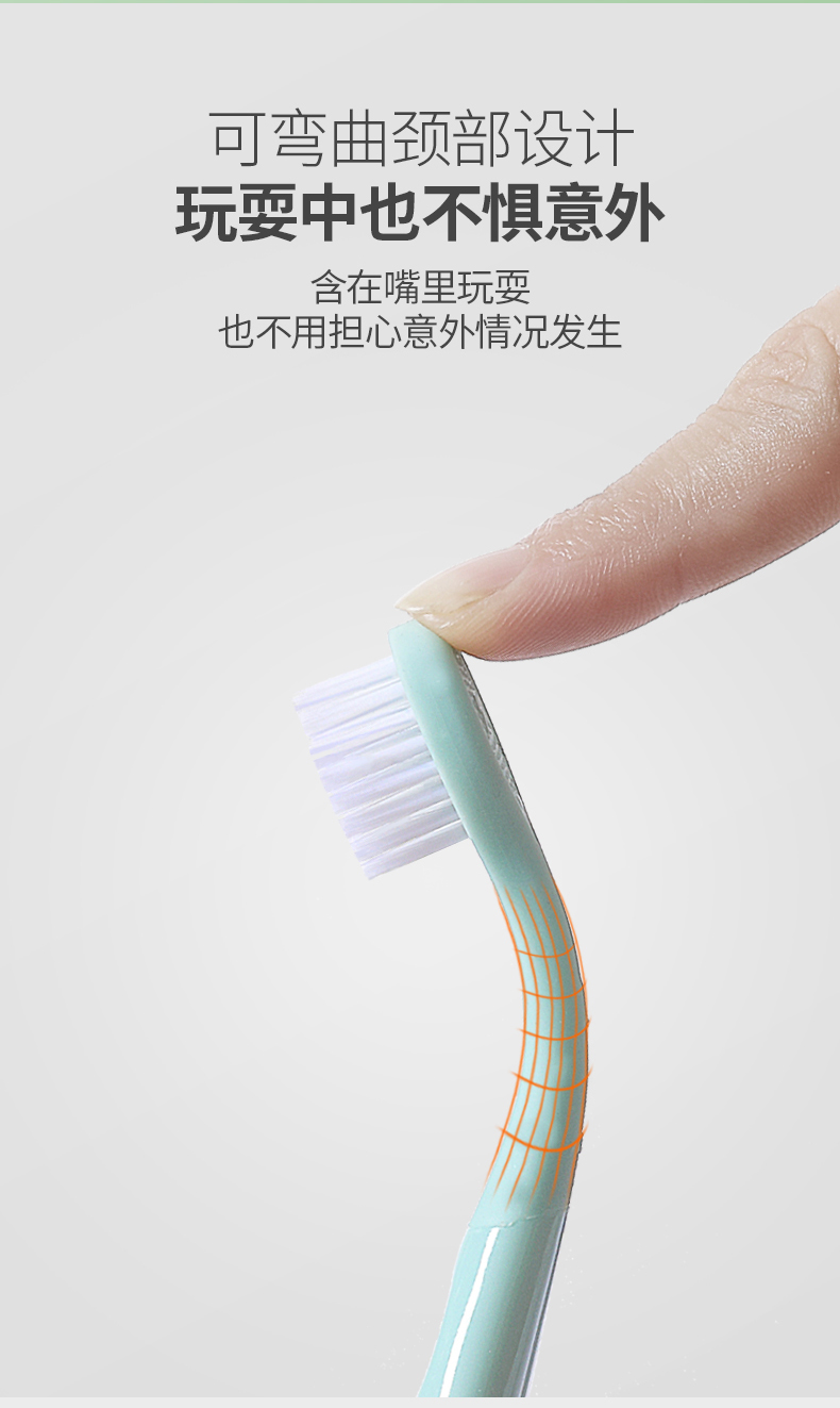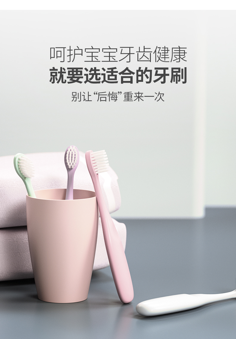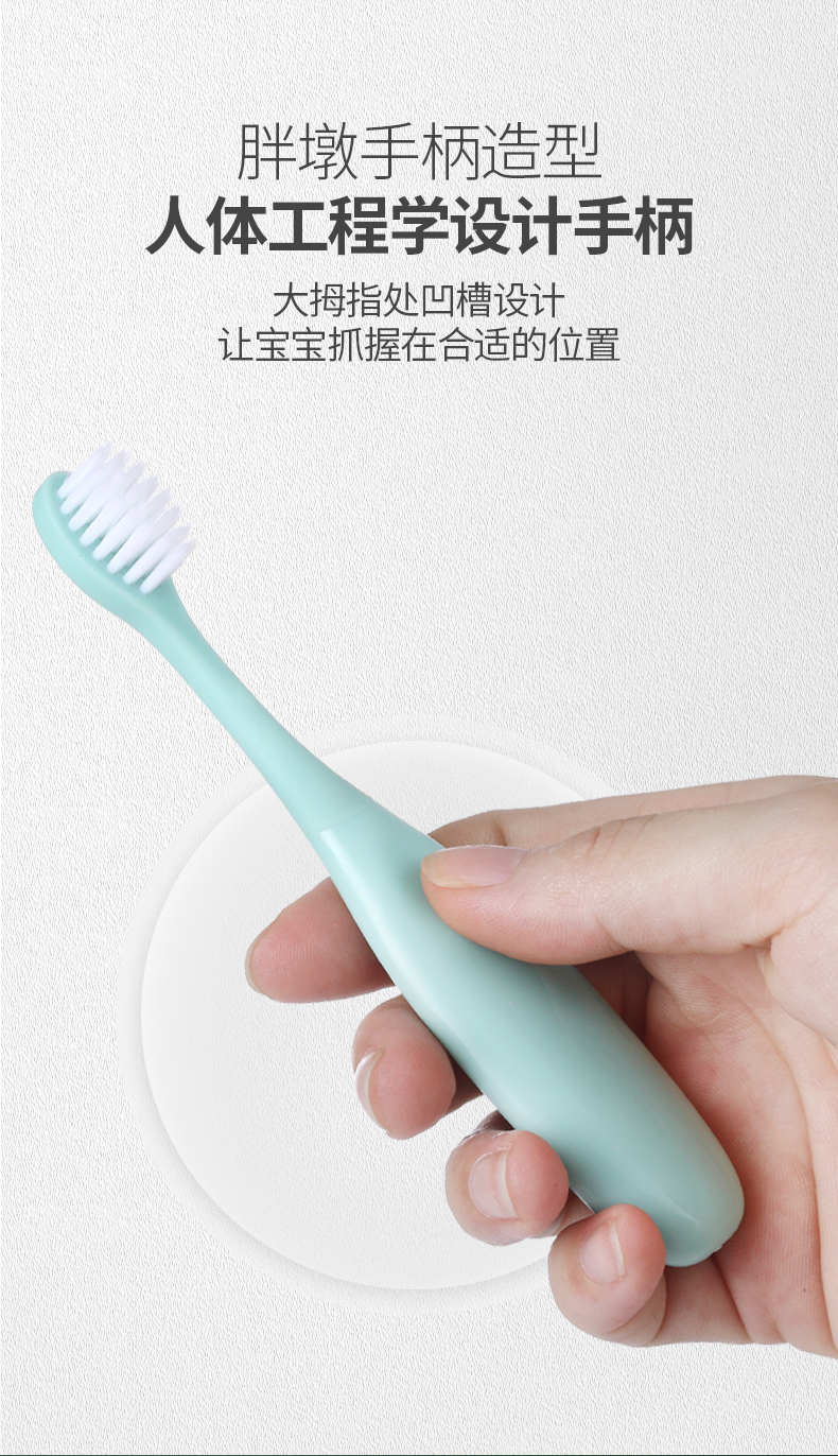 这款的手柄设计扁扁胖胖的,非常可爱,很适合小朋友的小手,抓握起来很舒服,马卡龙色系也是小盆友们的最爱!刷头软硬程度适中,保护孩子们的牙龈,这款牙刷还是很推荐哒!价格非常可以哦,宝妈们入吧!