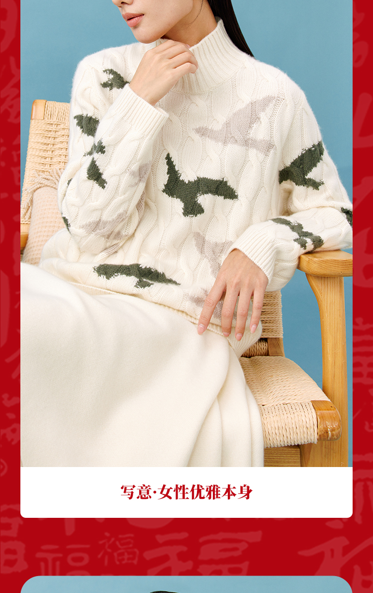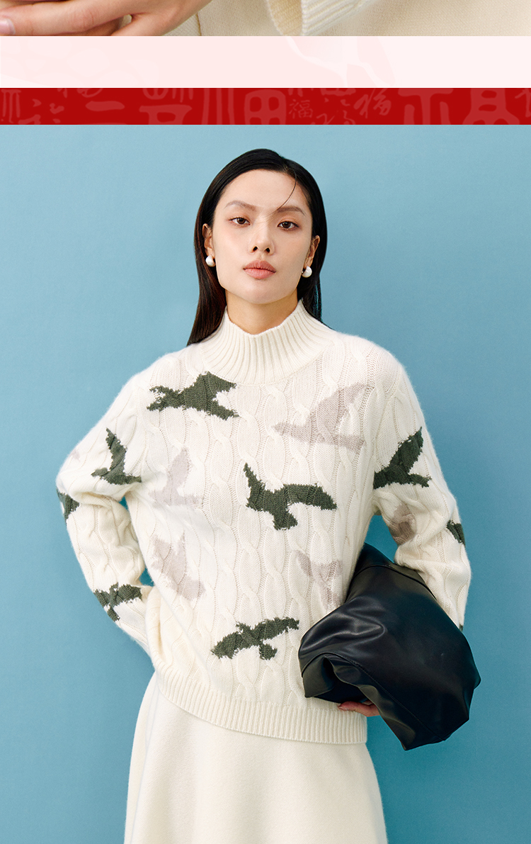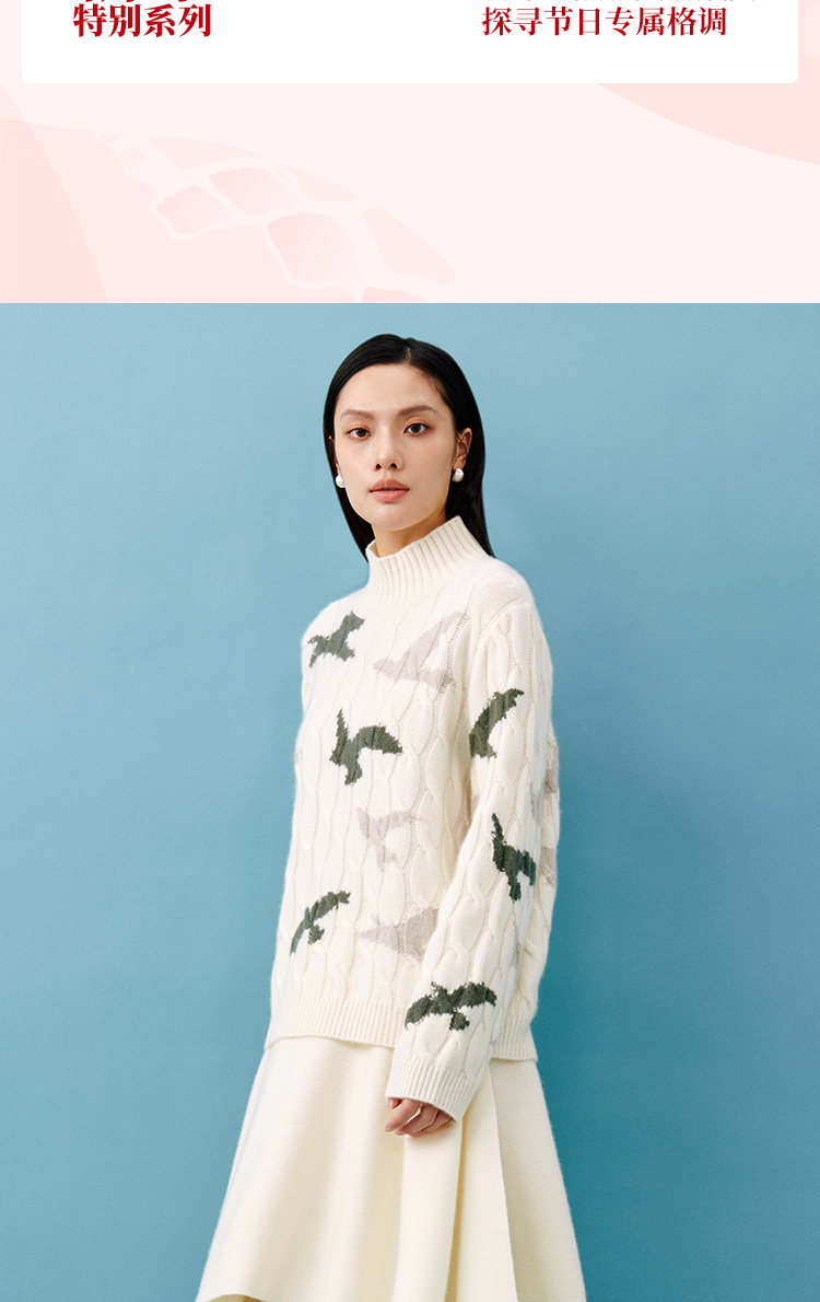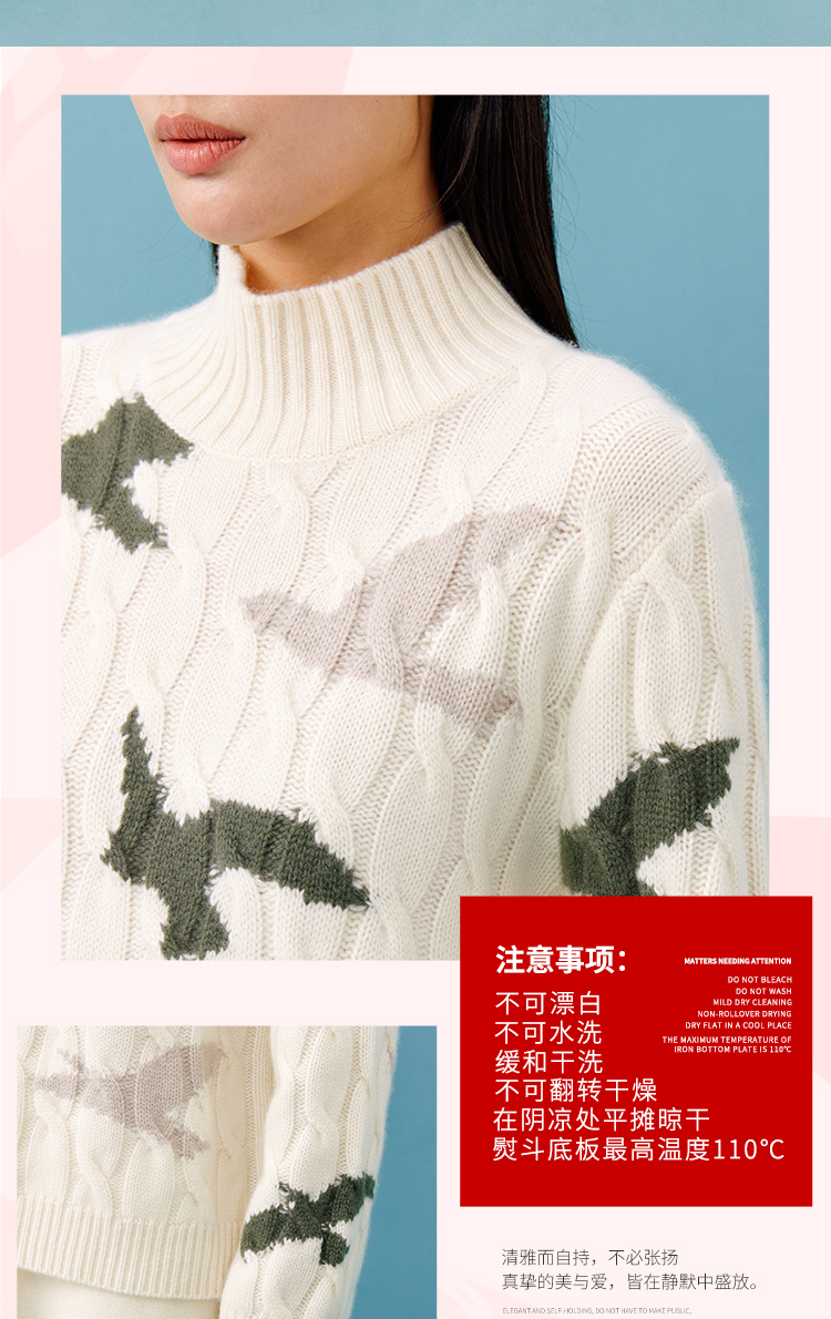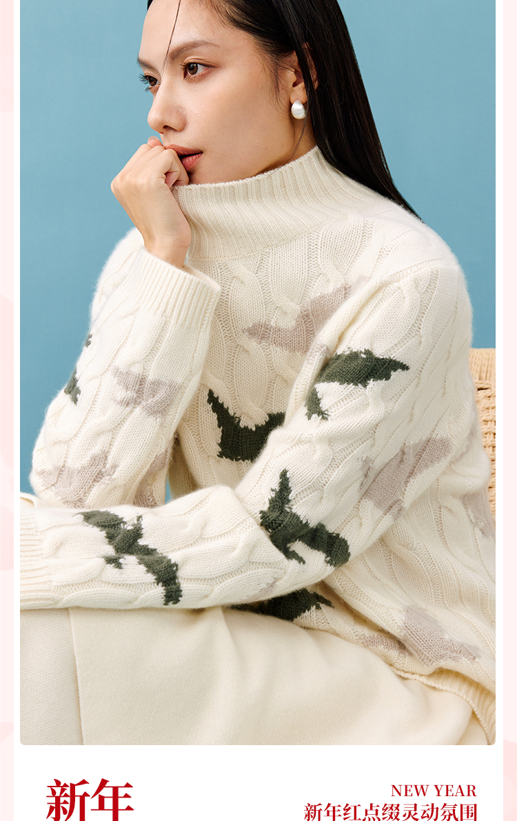 东黎 • 山羊绒女士秋冬提花半高领套衫 4585