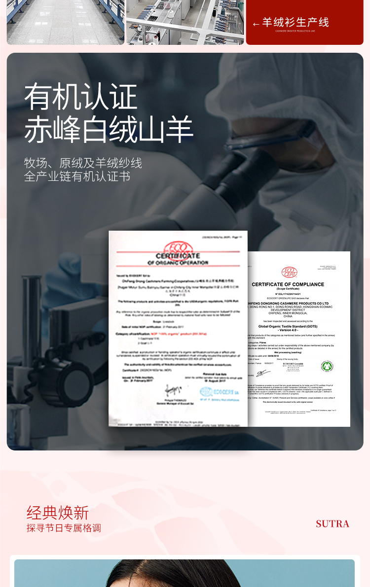 东黎羊绒是赤峰东荣集团自主品牌,自有牧场/羊绒制品全产业链优势,实现了羊绒从“牧场”到“商场”的华丽转变。