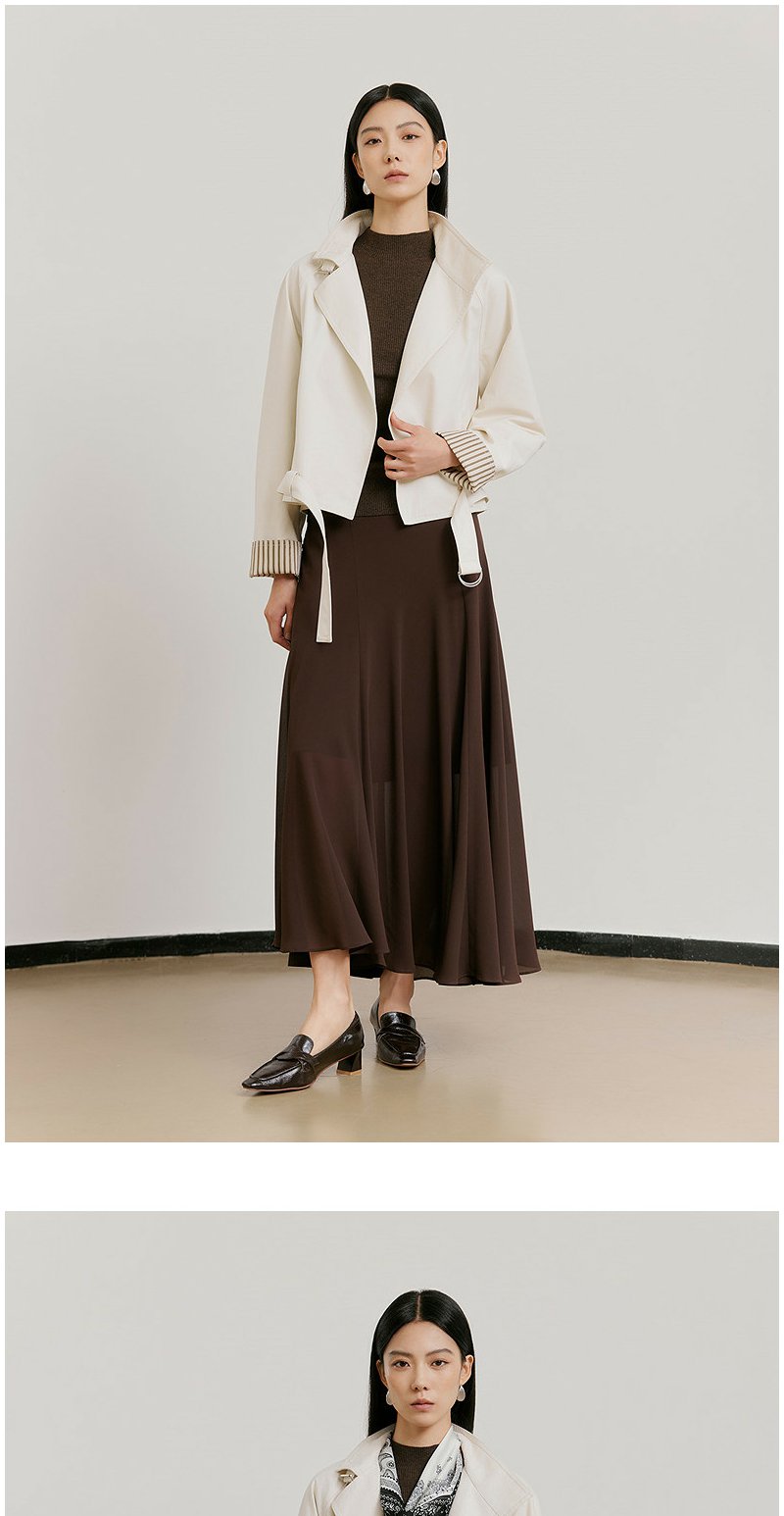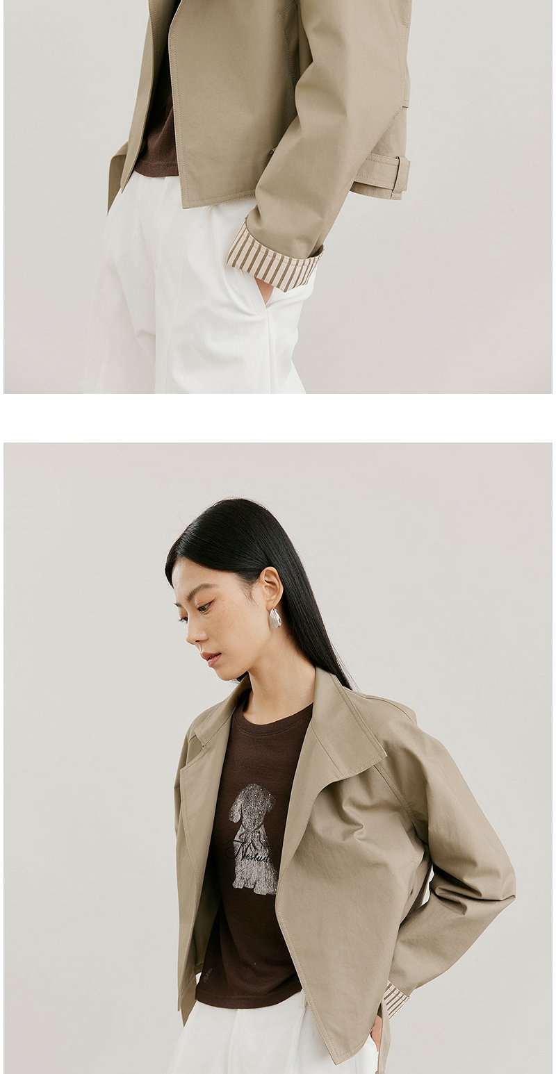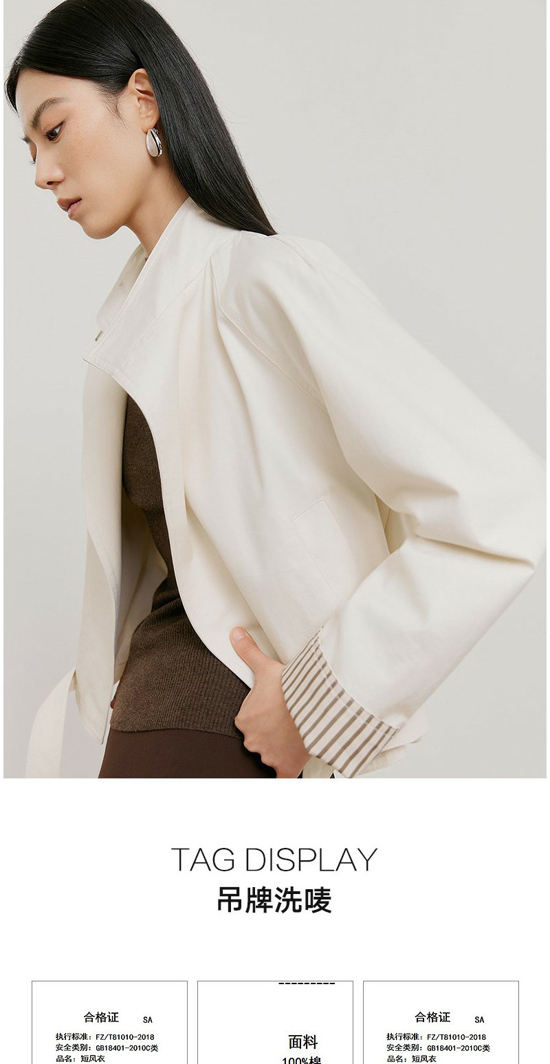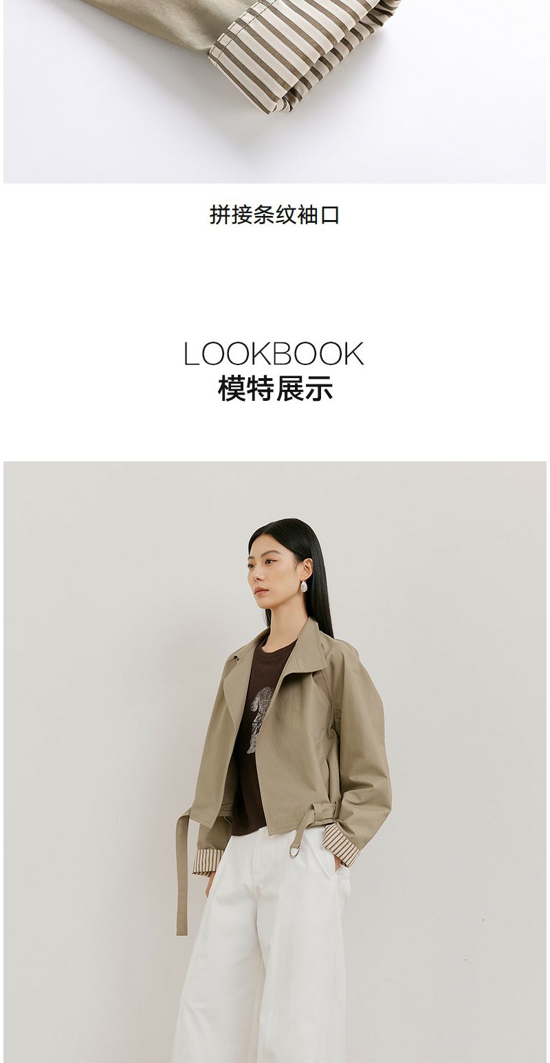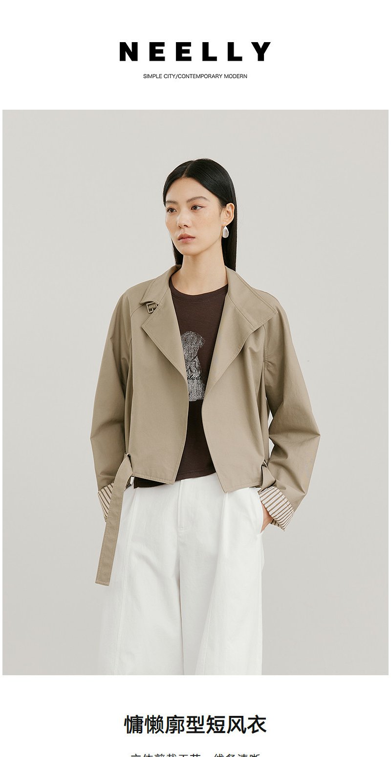 NEELLY纳俪商场同款春新款时尚休闲百搭短风衣女宽松利落廓形外套N26021F01073