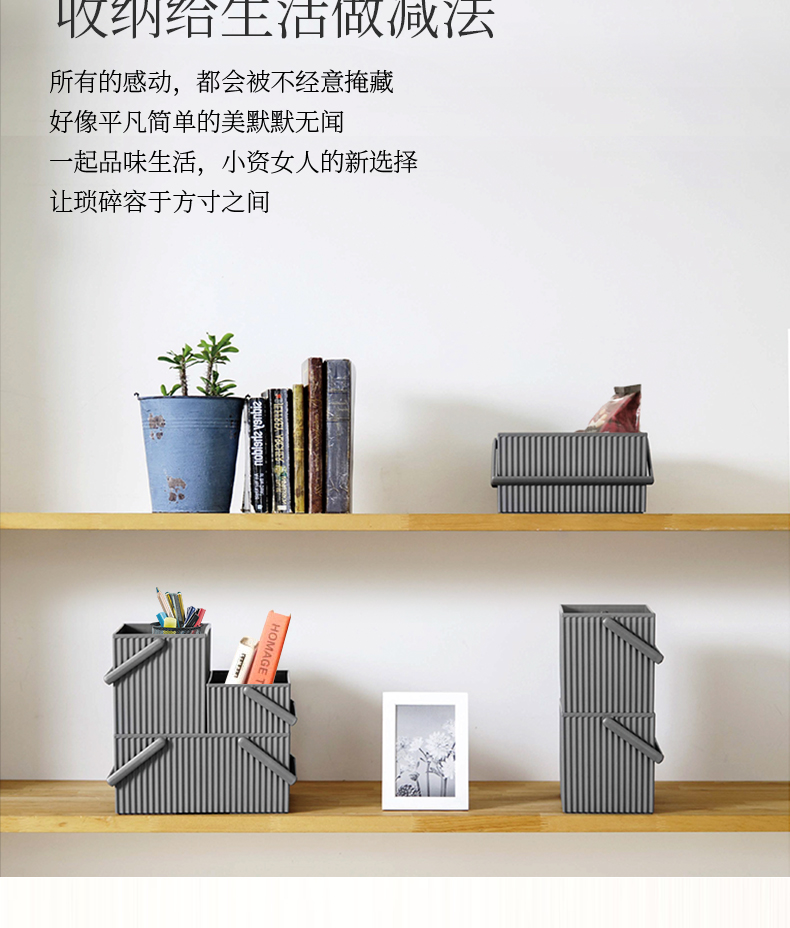 利快日本进口家用杂物桌面收纳筐篮子高颜值创意摆件多功能储物盒