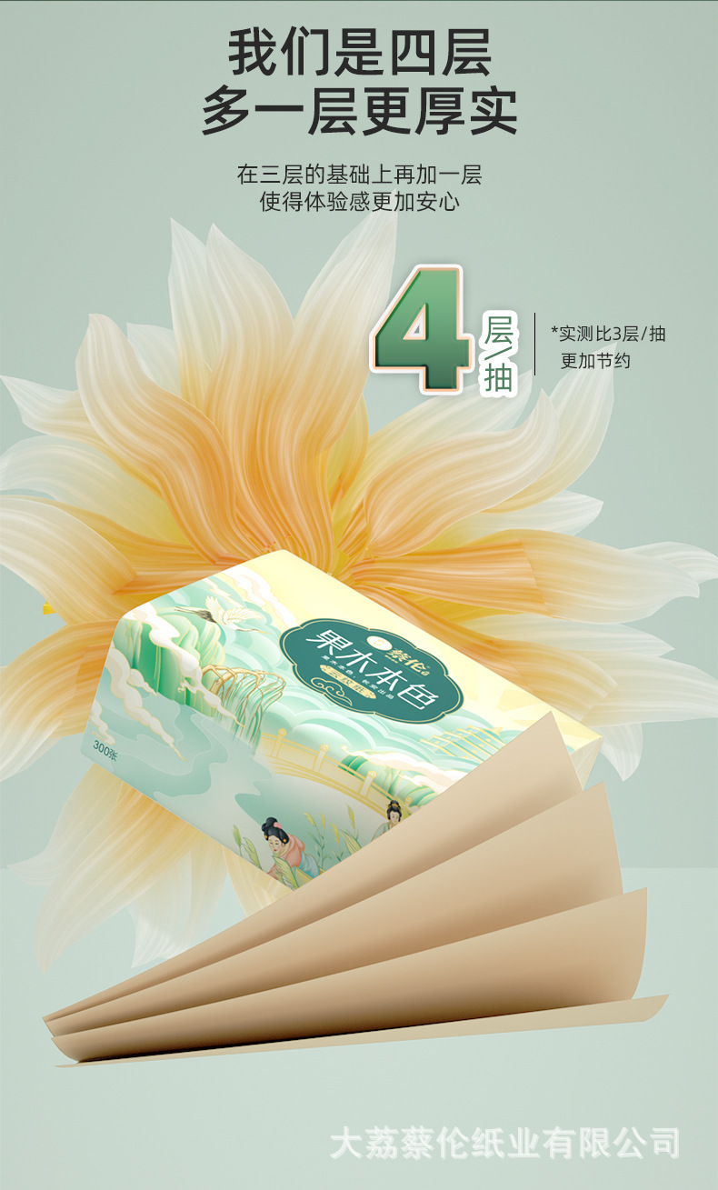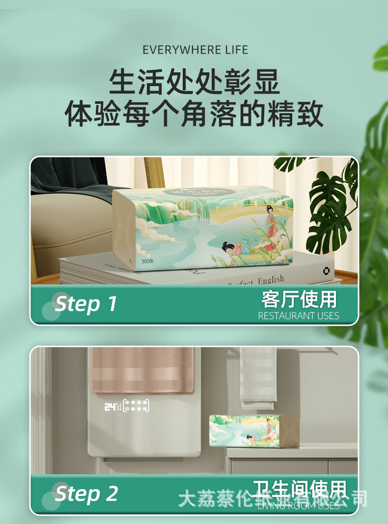 自营(泰利嘉)- 唐风抽纸加厚四层柔软亲肤吸水性强家庭办公清洁多用不易掉屑
