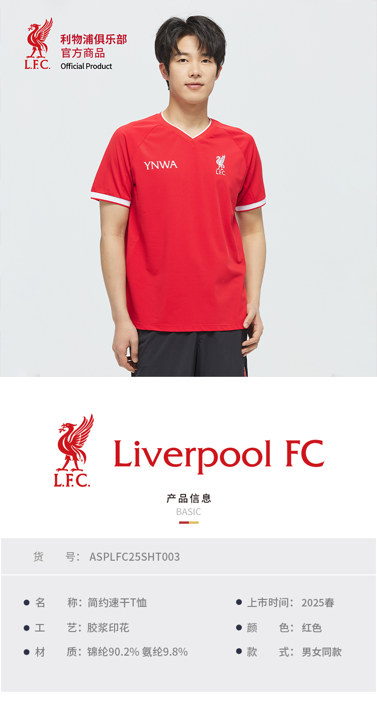 【官方正版】利物浦俱乐部官方商品 | 新款春夏户外运动简约速干T恤男女