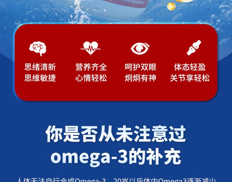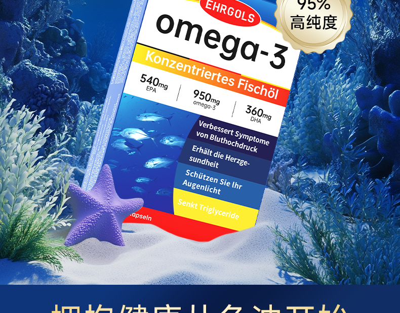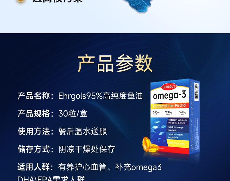 健耐德EHRGOLS高纯度含量omega3深海鱼油欧米伽鱼油软胶囊