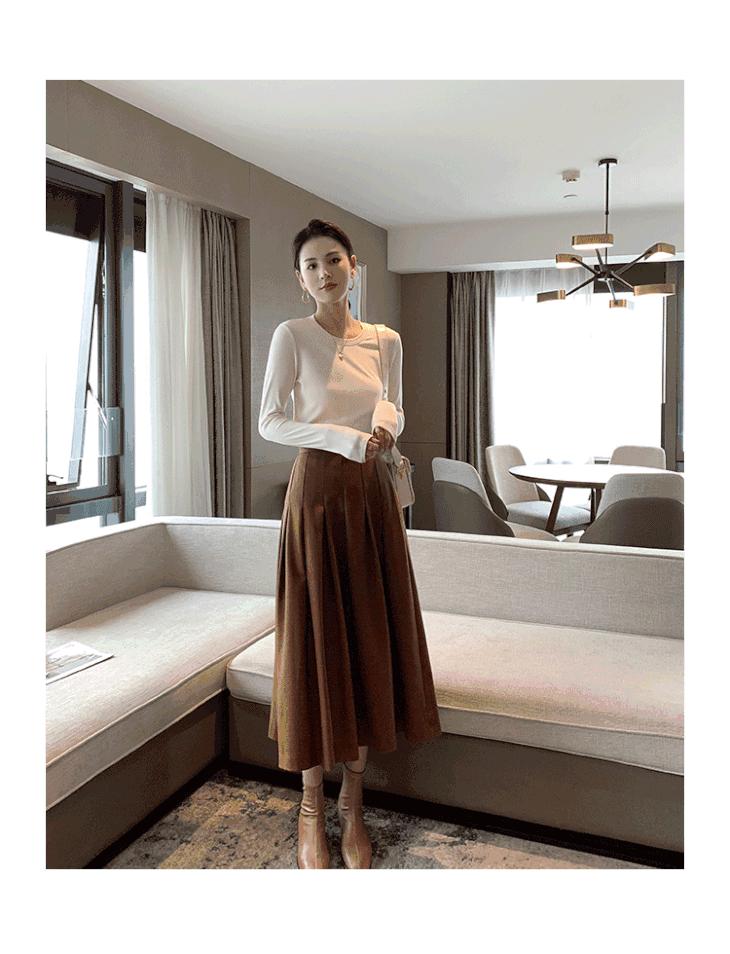 【商场同款】娇鼎半裙 百褶毛呢 中长款焦糖色 CJSDA86