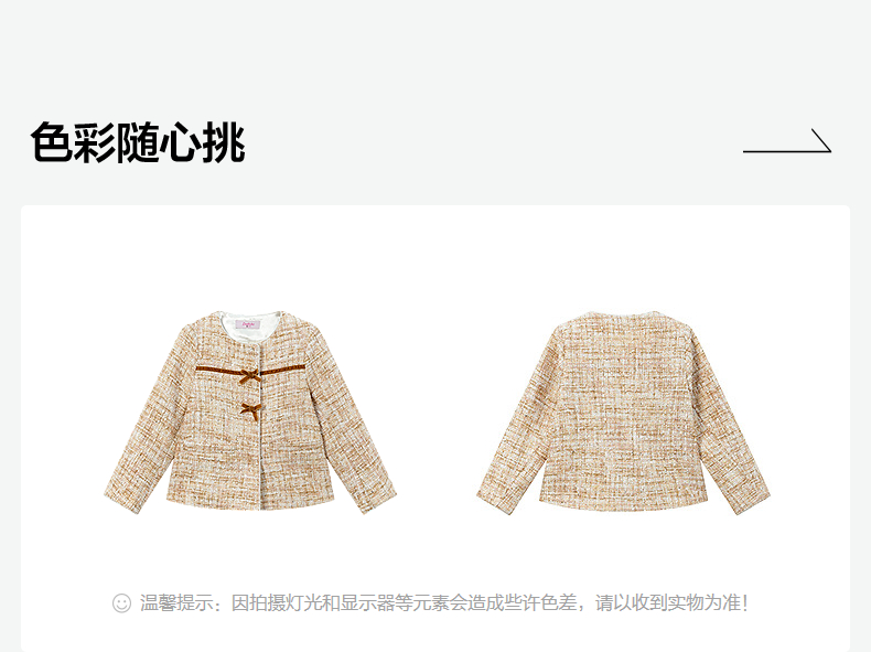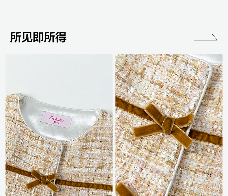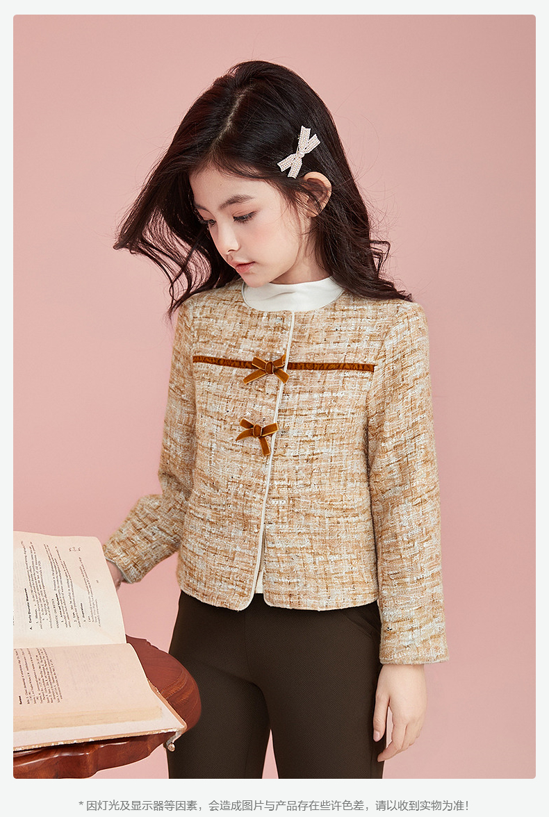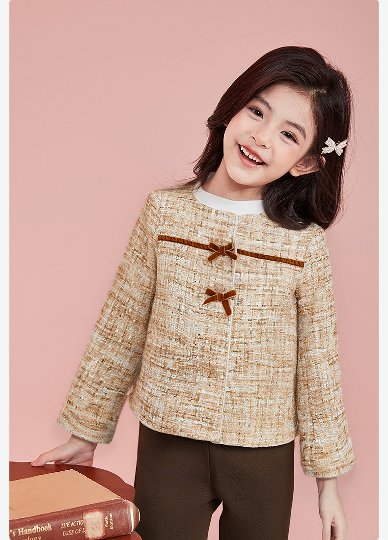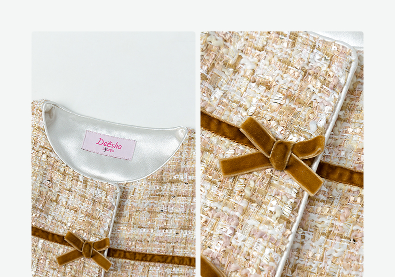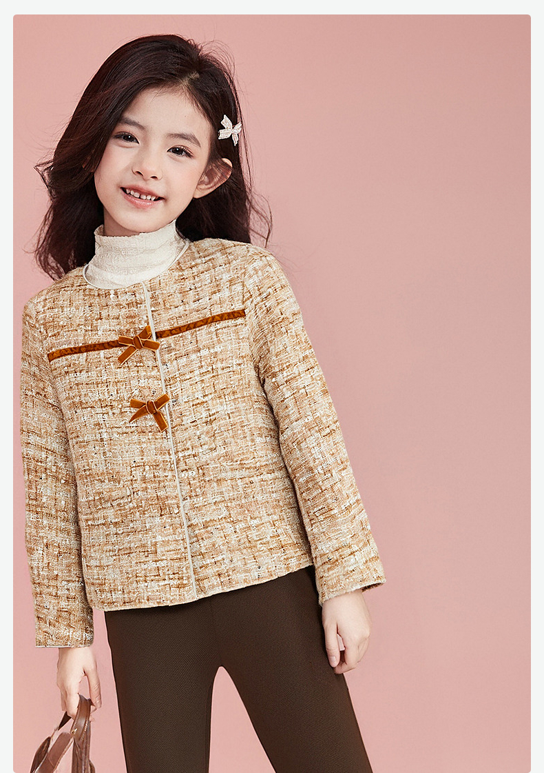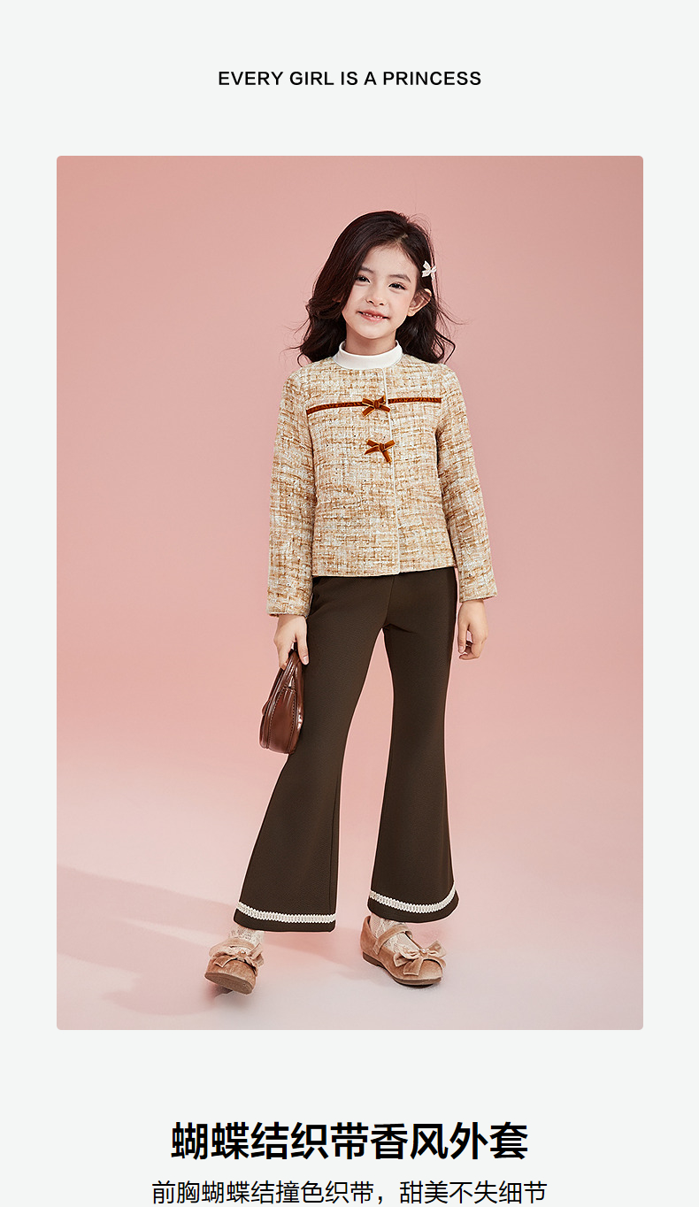 笛莎Deesha 童装女童外套2025秋新款女童蝴蝶结织带香风外套