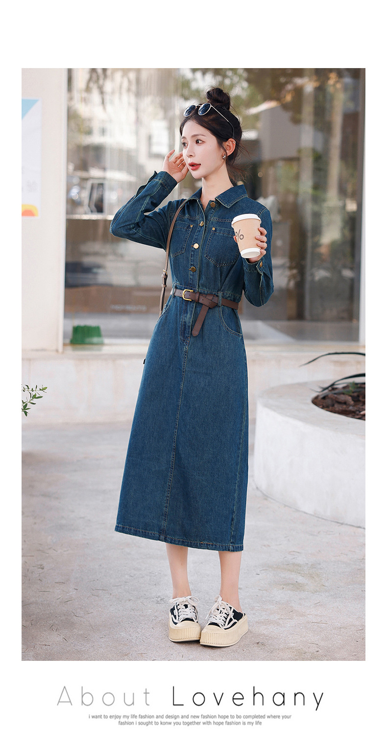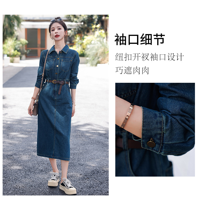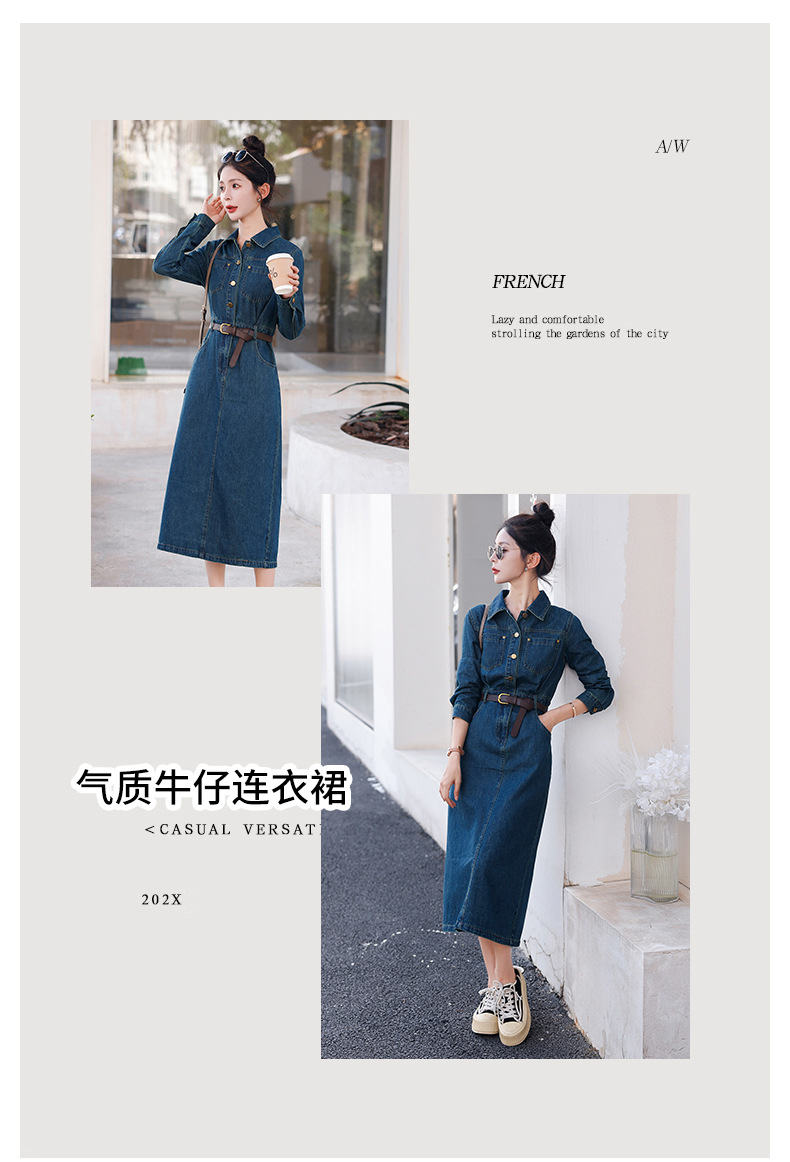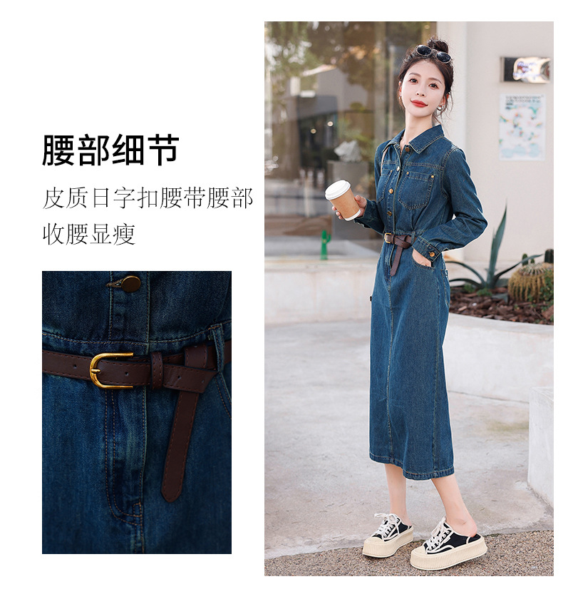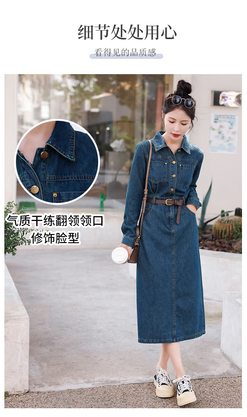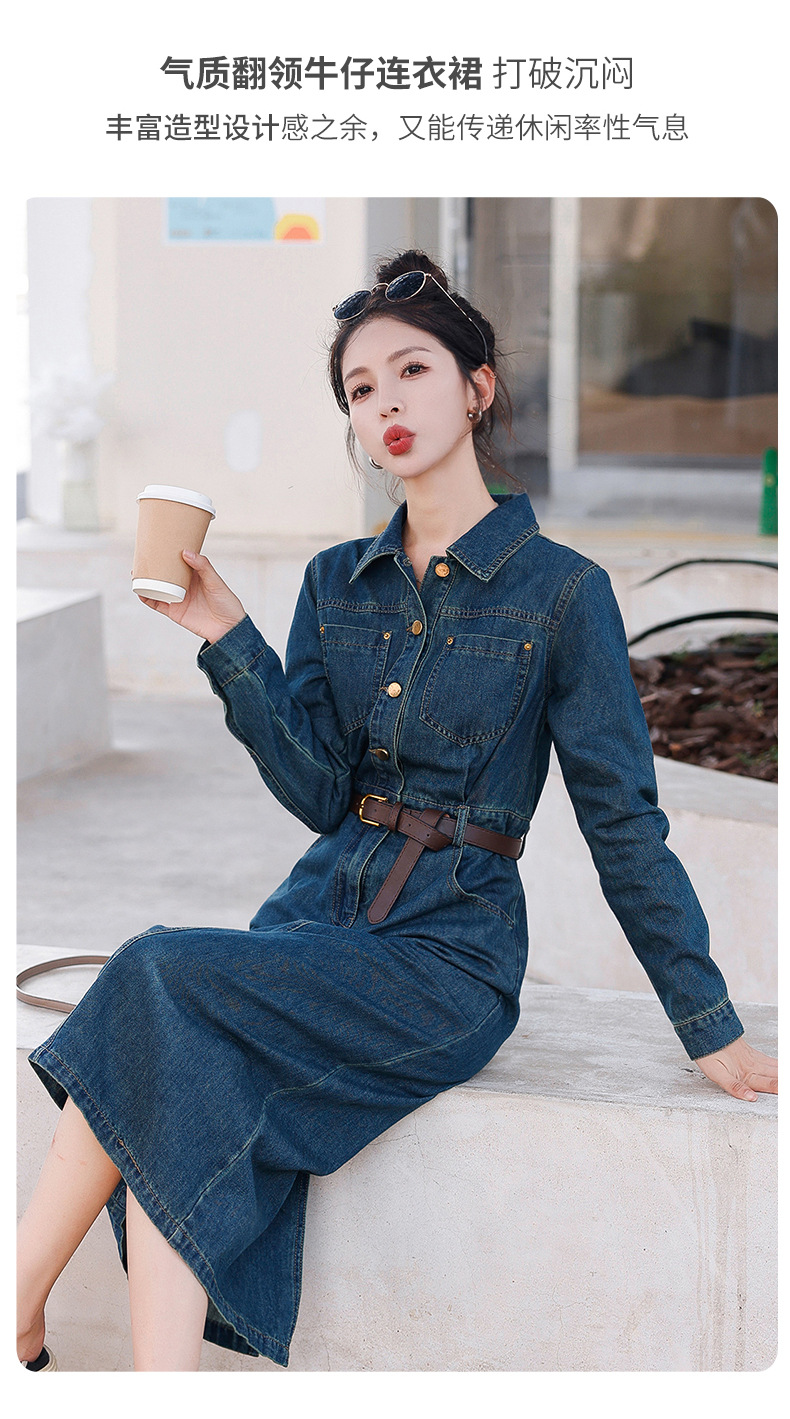 牛仔翻领连衣裙,韩版时尚气质显瘦中长款裙HR-HSYL2831