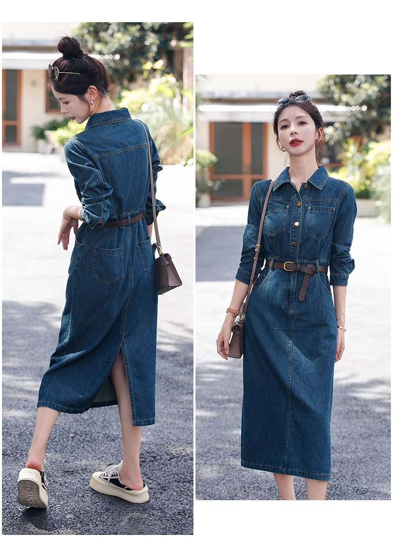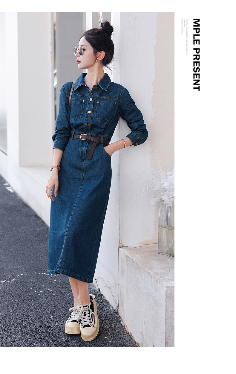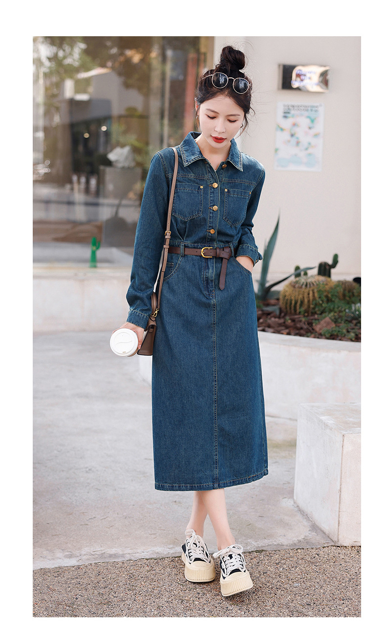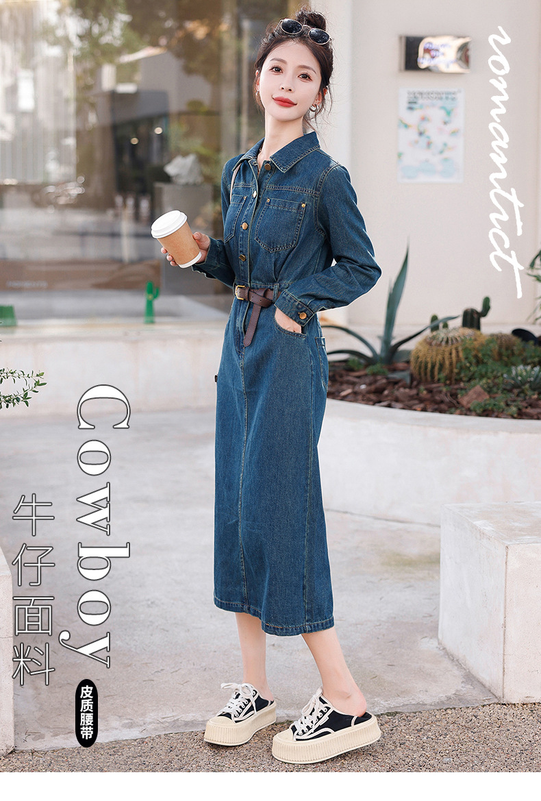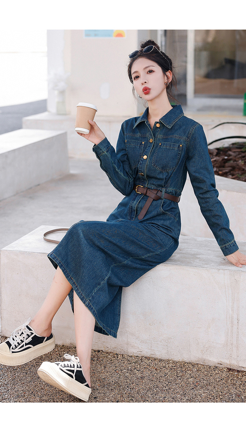 牛仔翻领连衣裙,韩版时尚气质显瘦中长款裙HR-HSYL2831