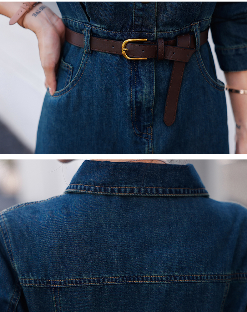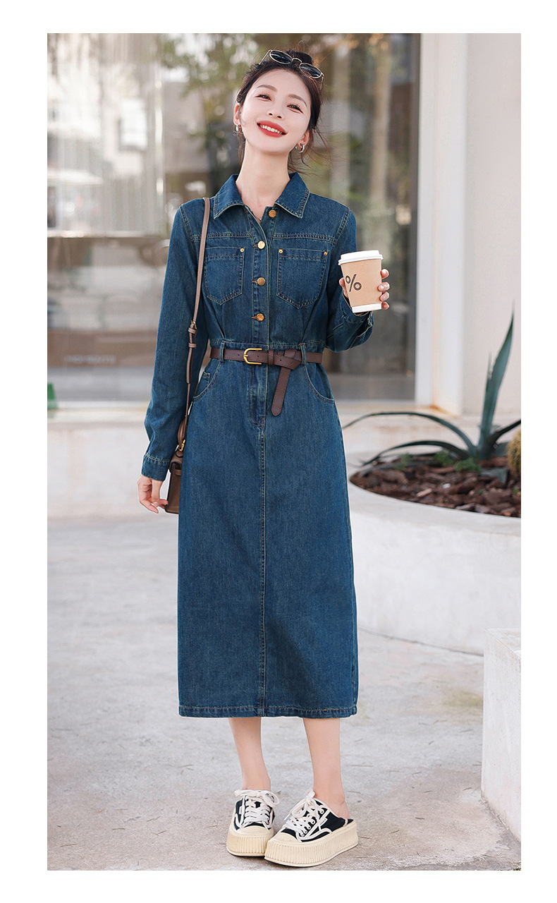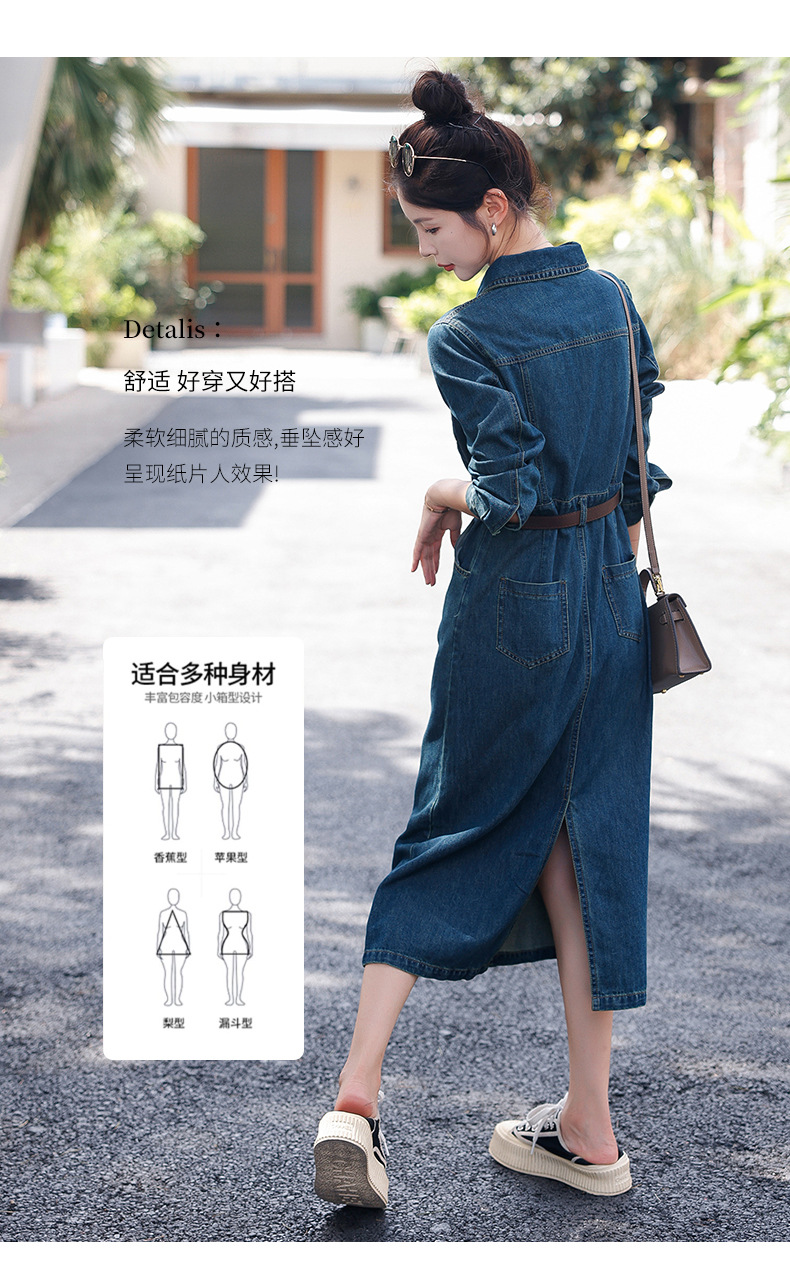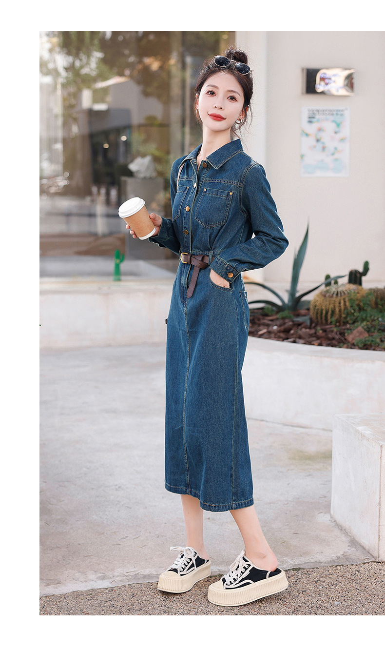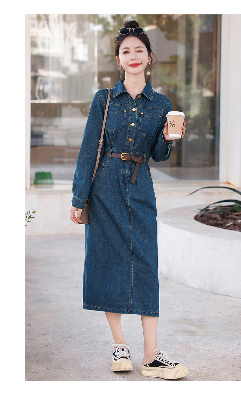牛仔翻领连衣裙,韩版时尚气质显瘦中长款裙HR-HSYL2831