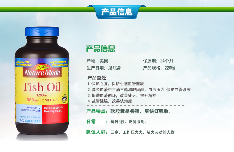 【保税仓】Nature Made鱼油液体软胶囊360mg 220粒 商品缩略图0 【保税仓】Nature Made鱼油液体软胶囊360mg 220粒 商品缩略图1