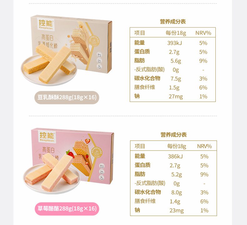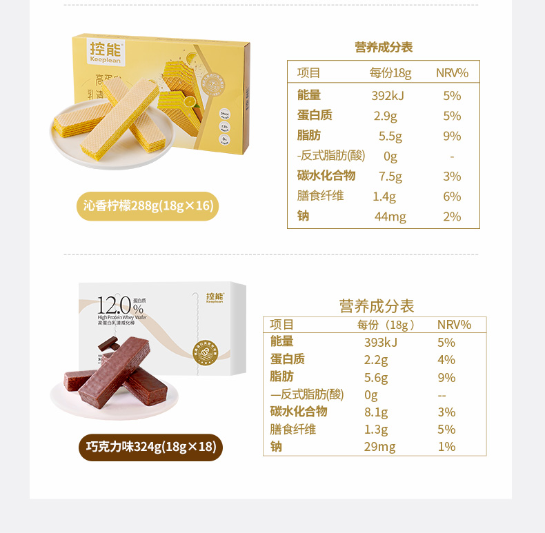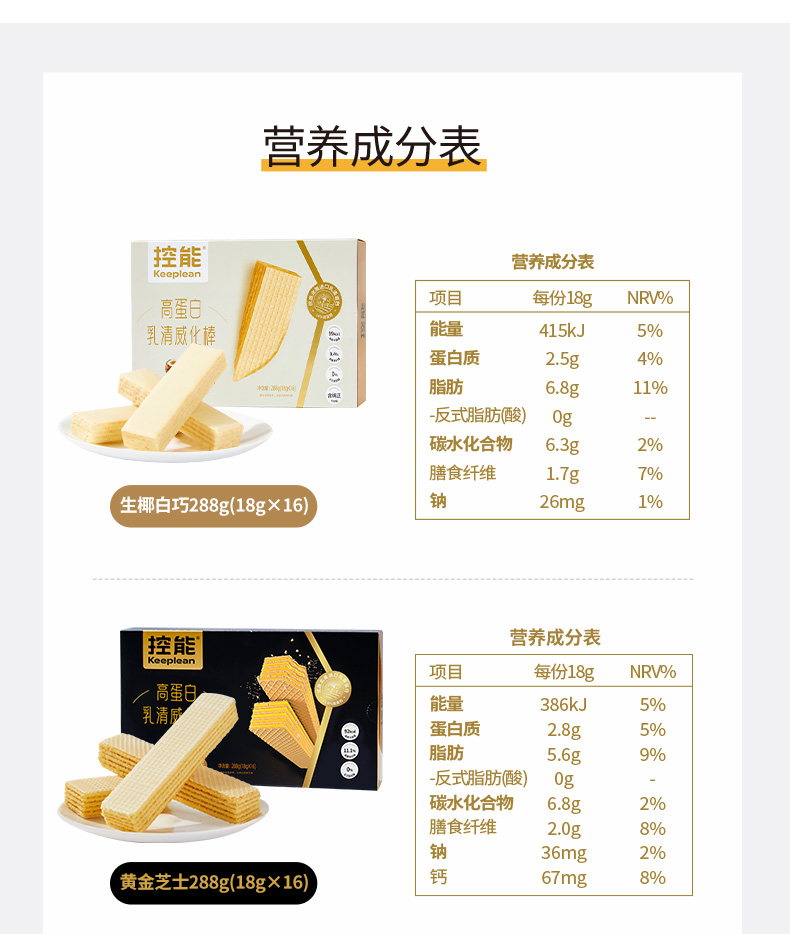 控能 高蛋白乳清威化棒 多口味 2盒装 288g*2