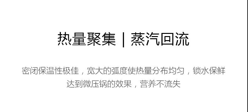 独特球形设计通体圆弧形,锅体及锅盖的曲率(圆弧度)完美贴合。密封保温性极佳,从而实现“极速烹饪”