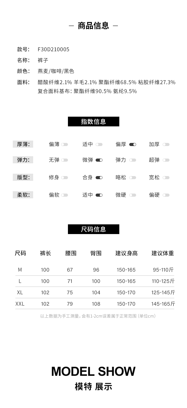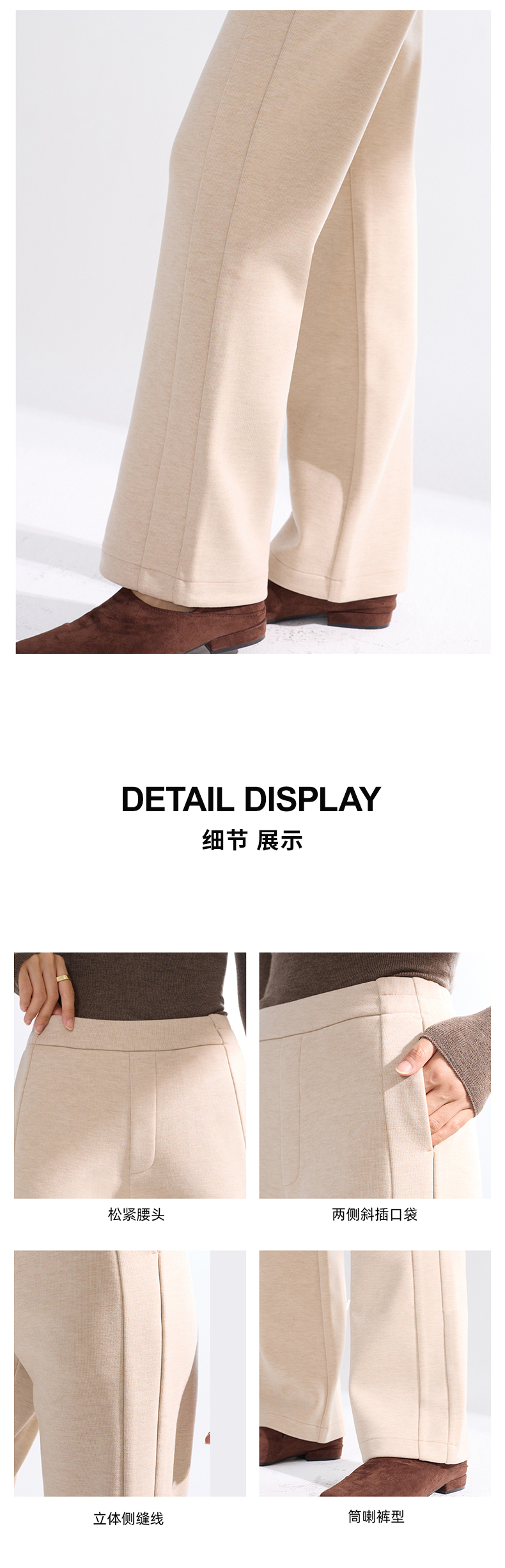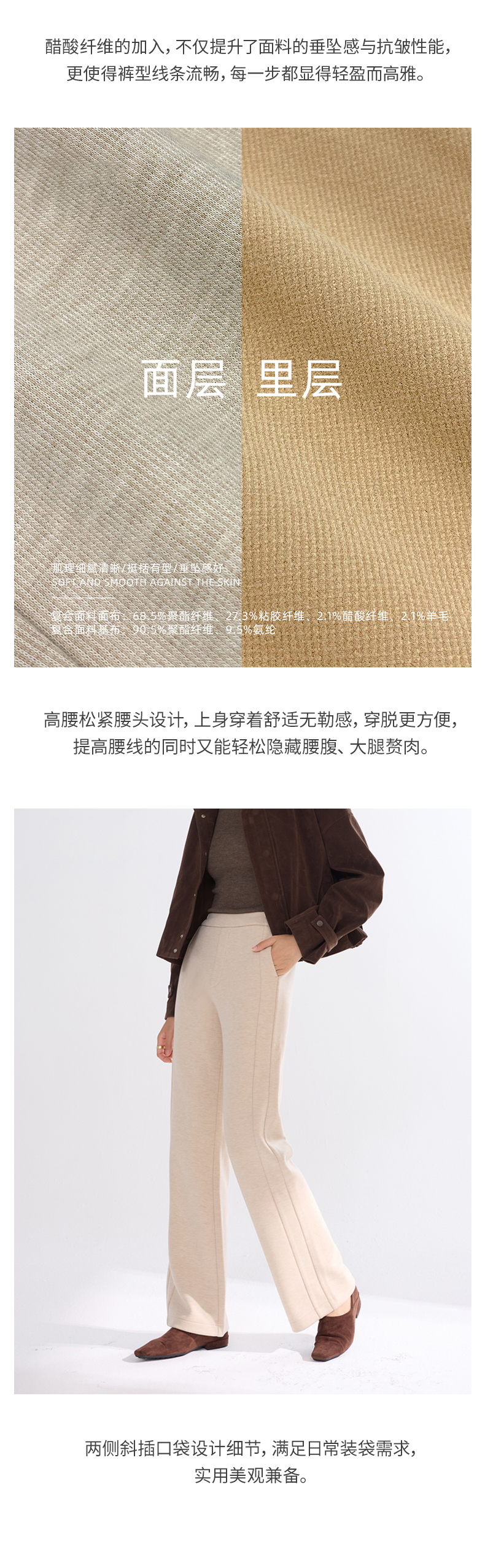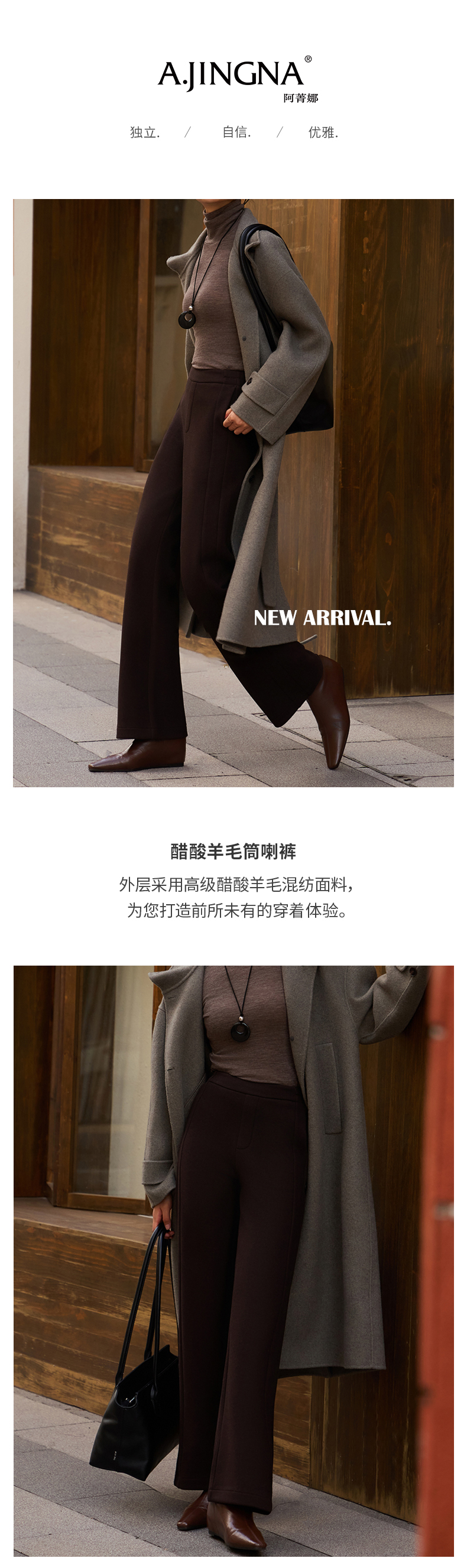 【羊毛混纺】阿菁娜醋酸羊毛高腰垂顺微喇裤F30D210005