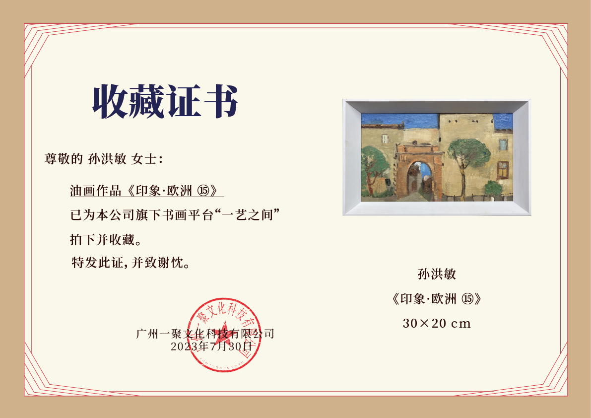 孙洪敏《印象-欧洲15》油画 20CMx30CM 约0.54平尺(已装框)【原作编号YH0025】