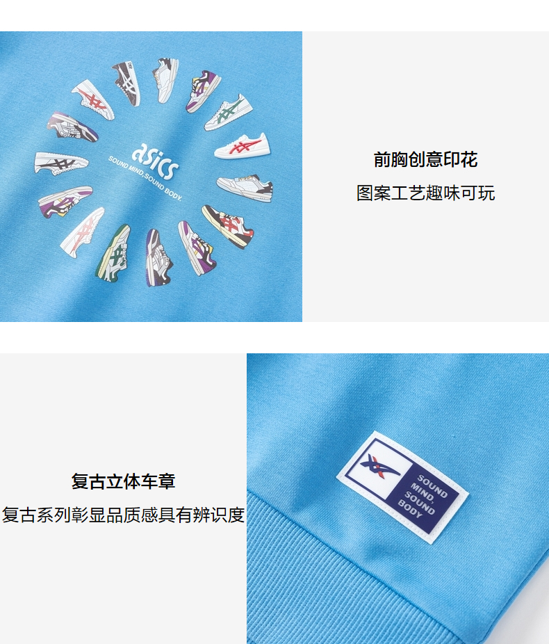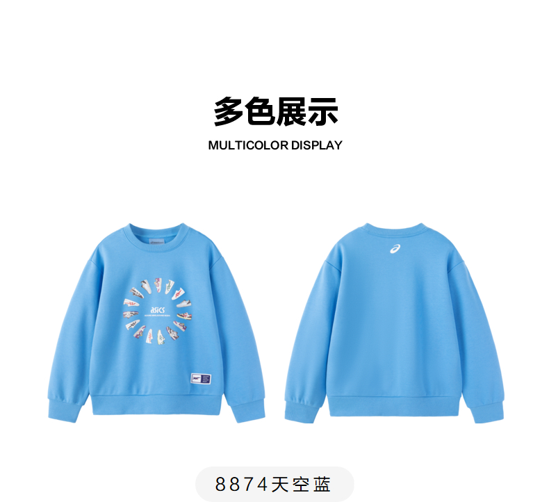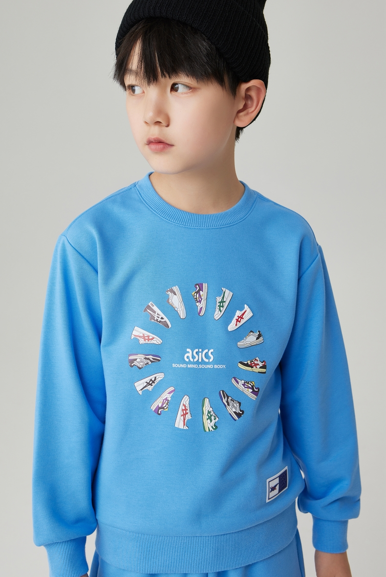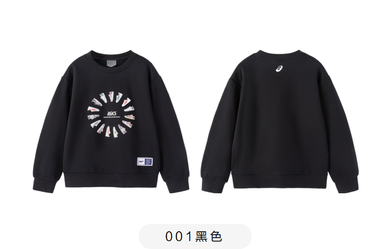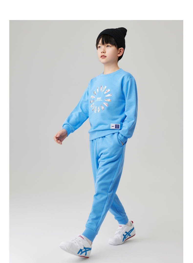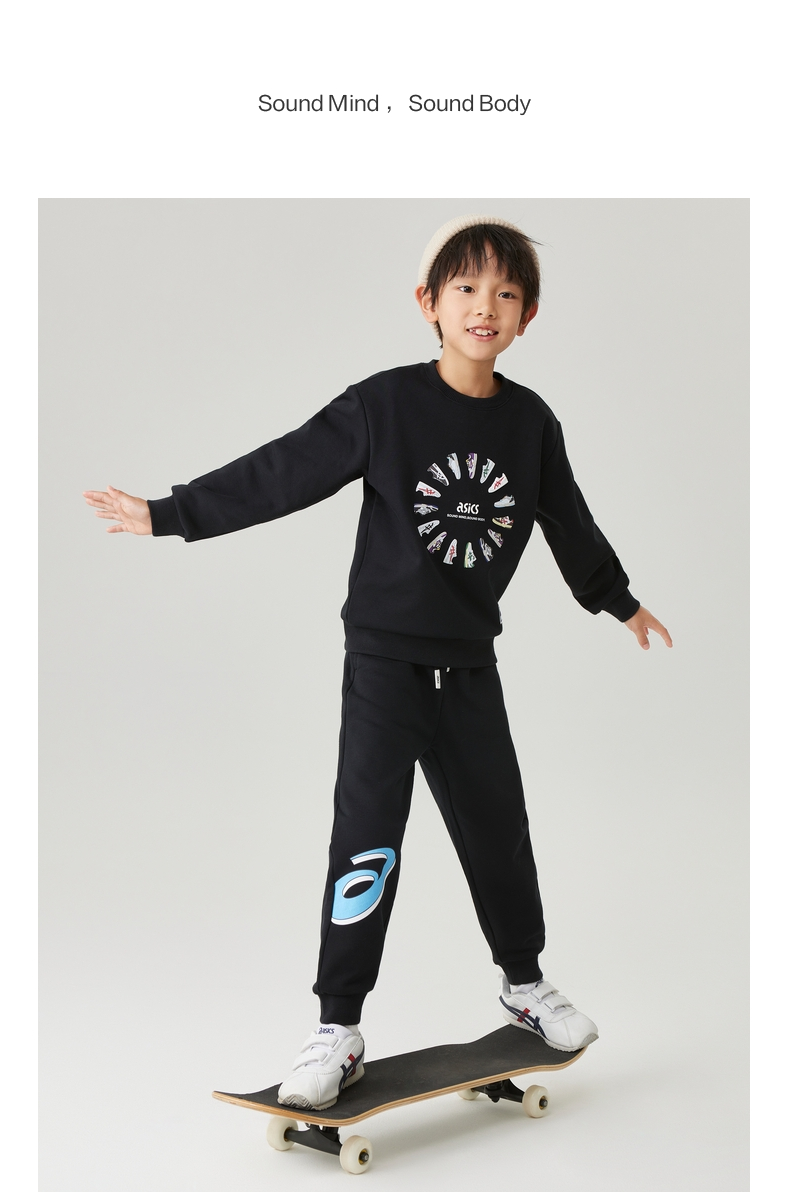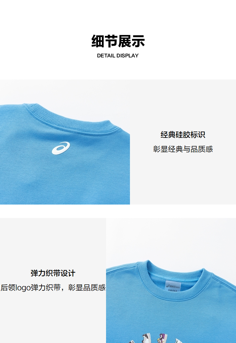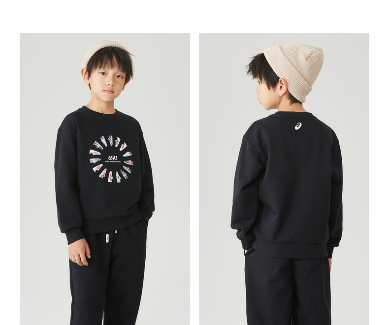 ASICS/亚瑟士童装23年秋季新款男童运动休闲百搭连帽长袖卫衣T恤