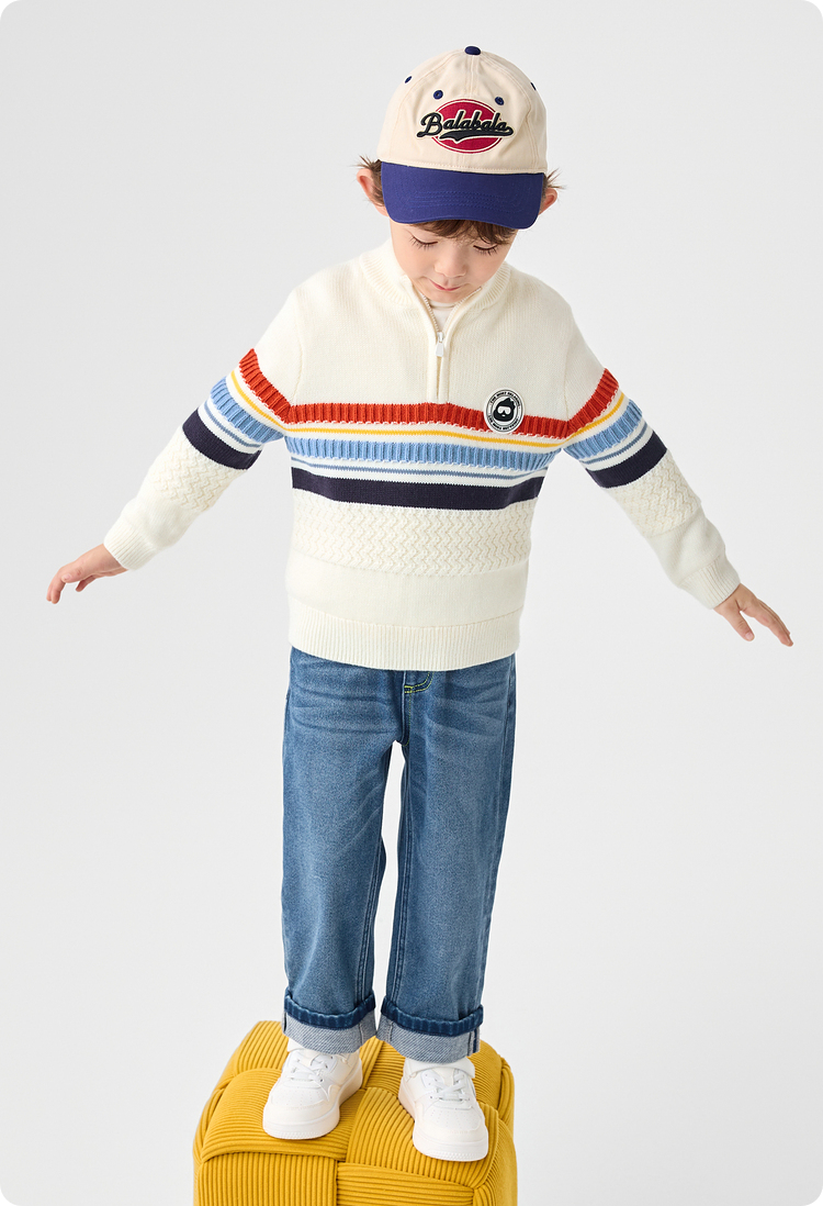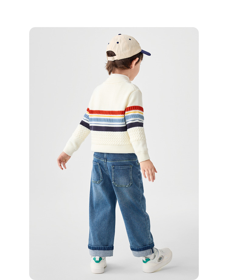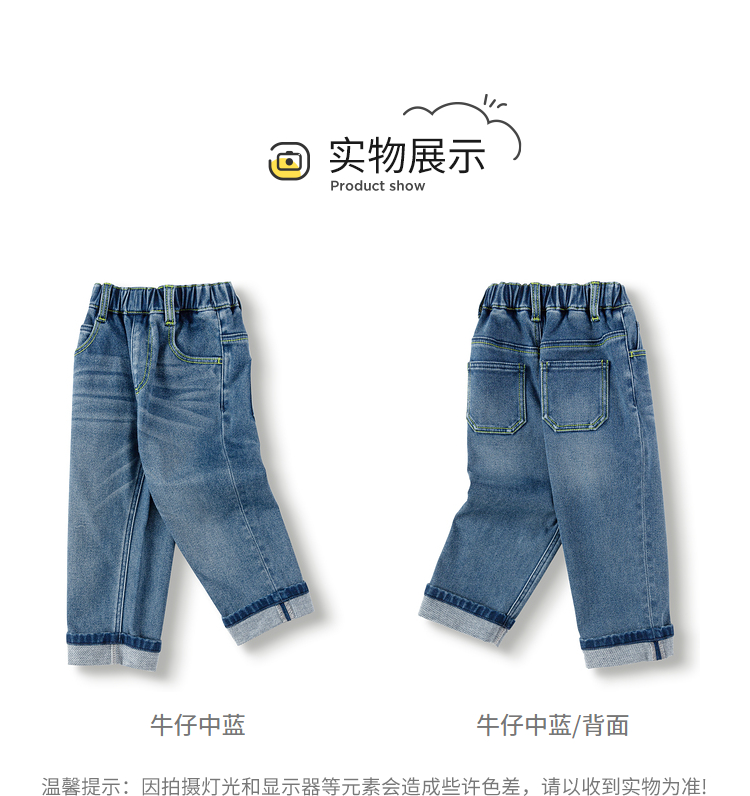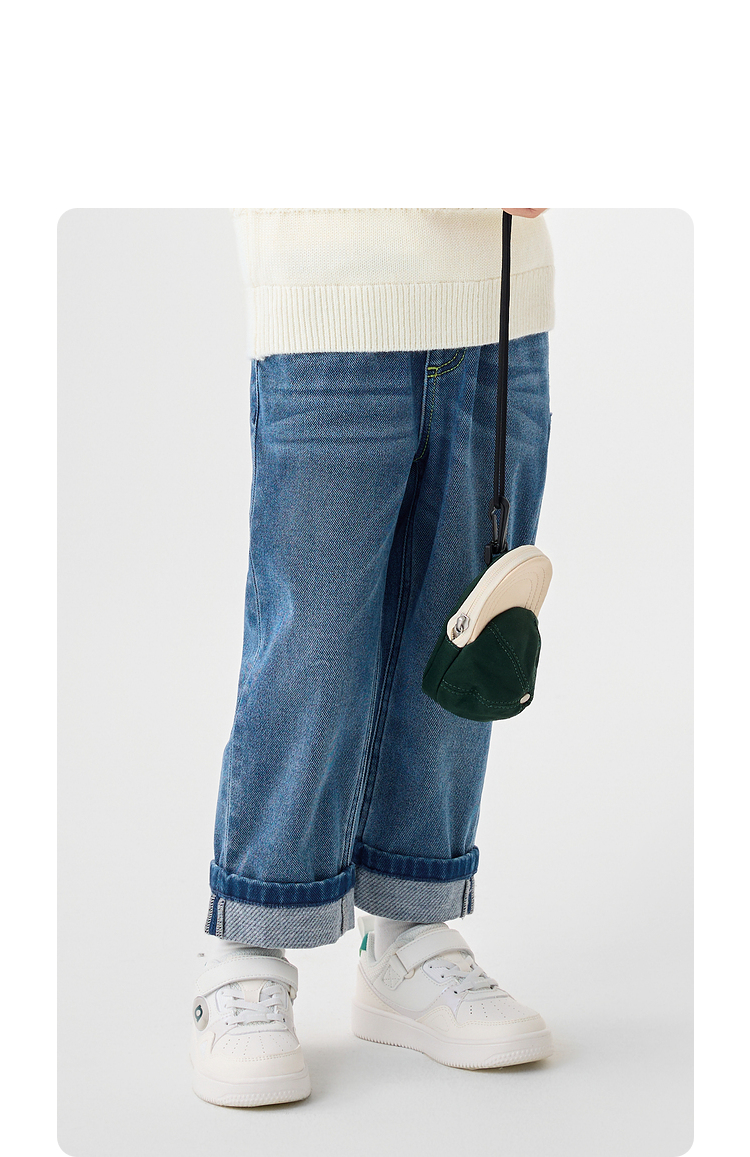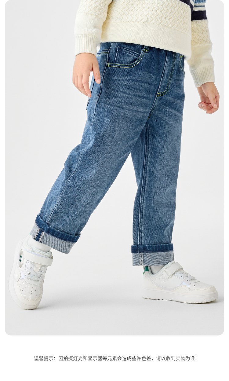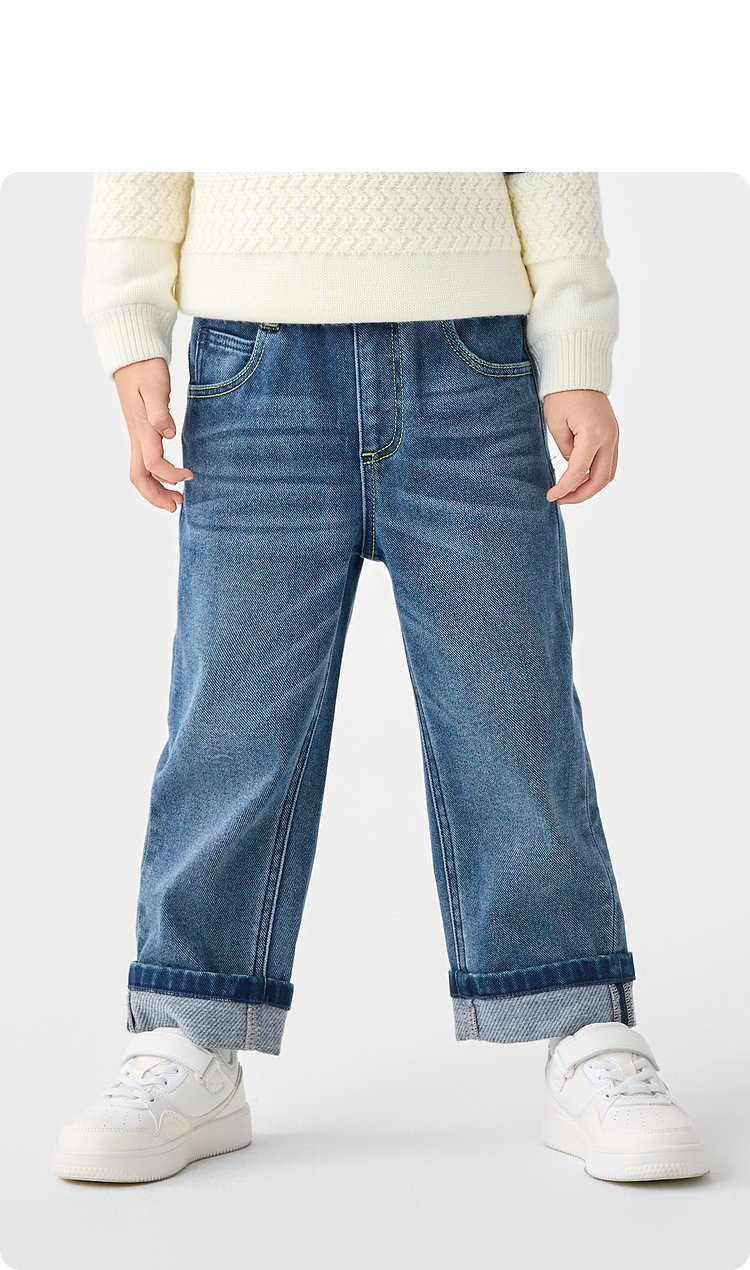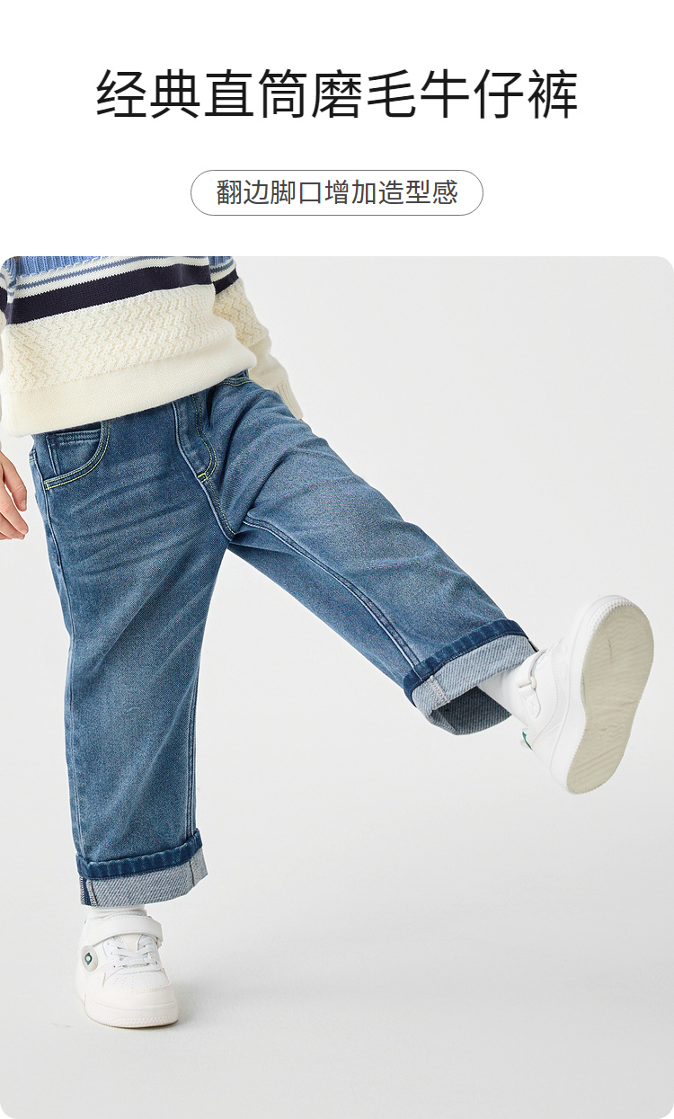 巴拉巴拉童装儿童长裤男童秋冬季翻边直筒牛仔裤复古百搭裤子小童
