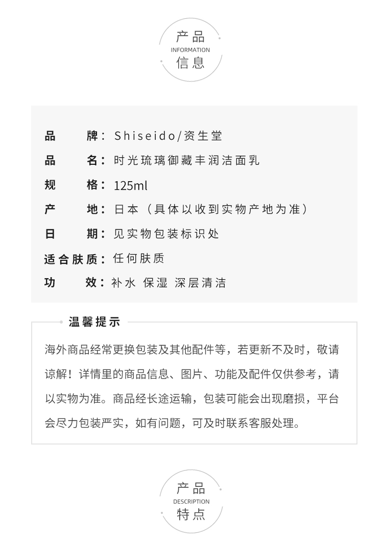 资生堂时光琉璃温和清洁洗面奶134g/125g 新老随机发 水油平衡洁面乳