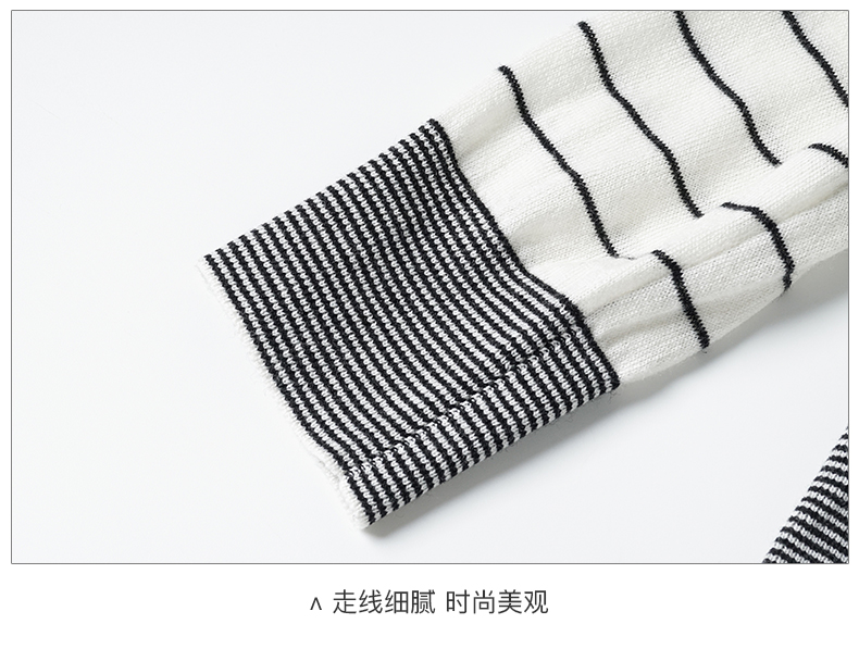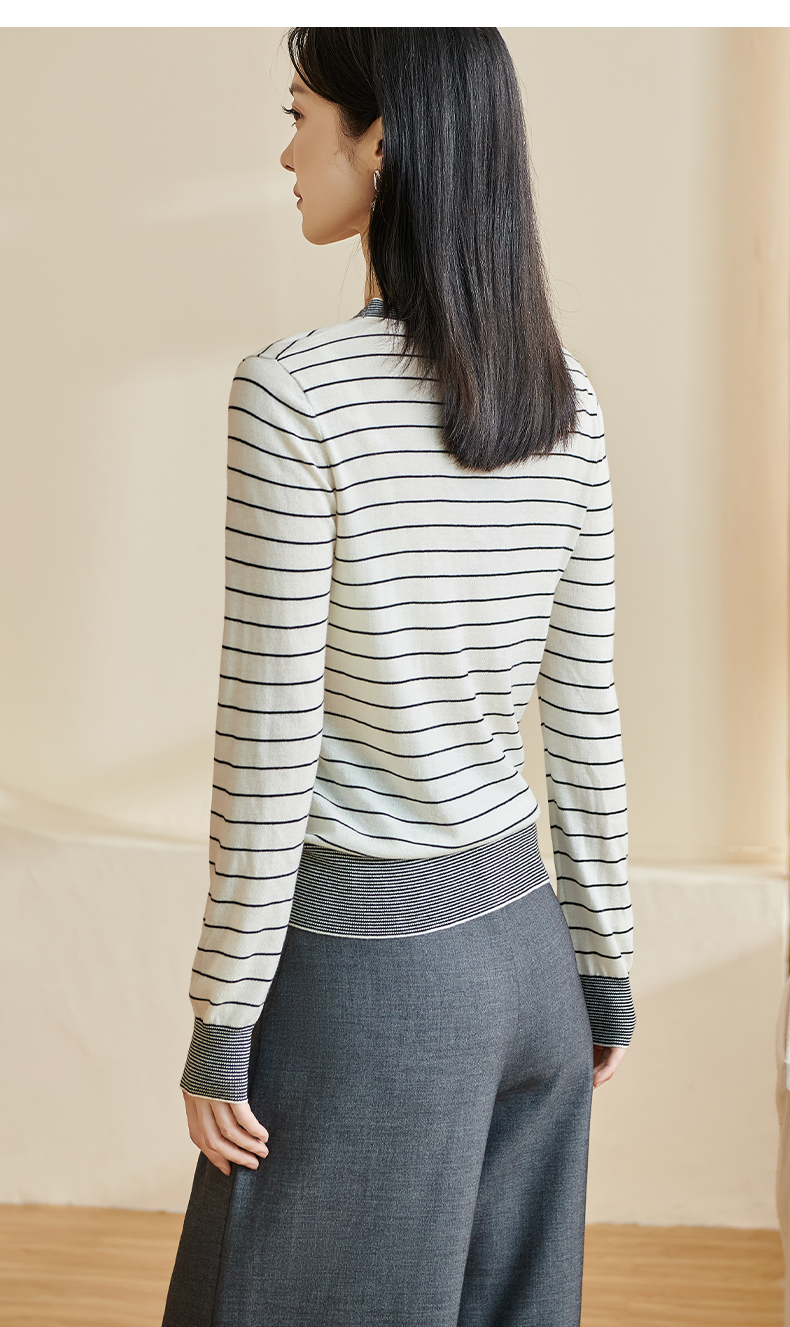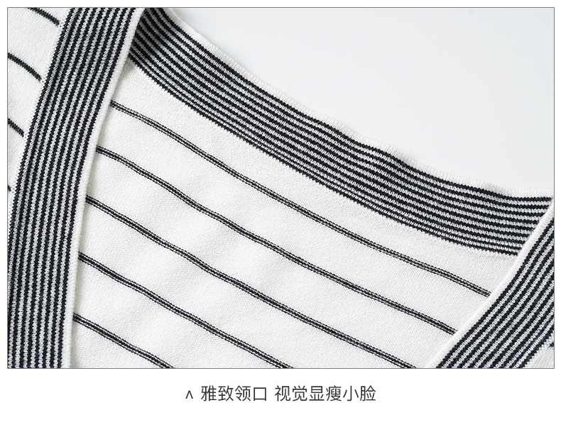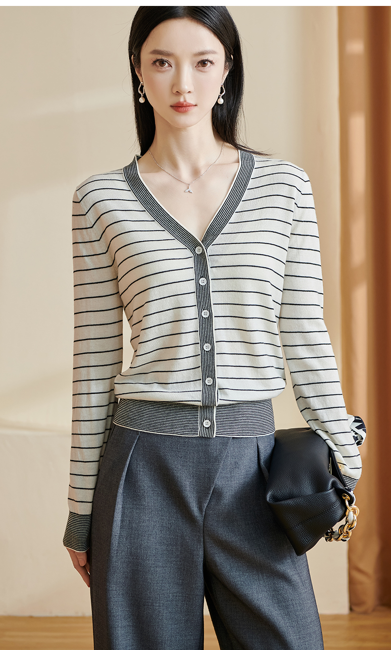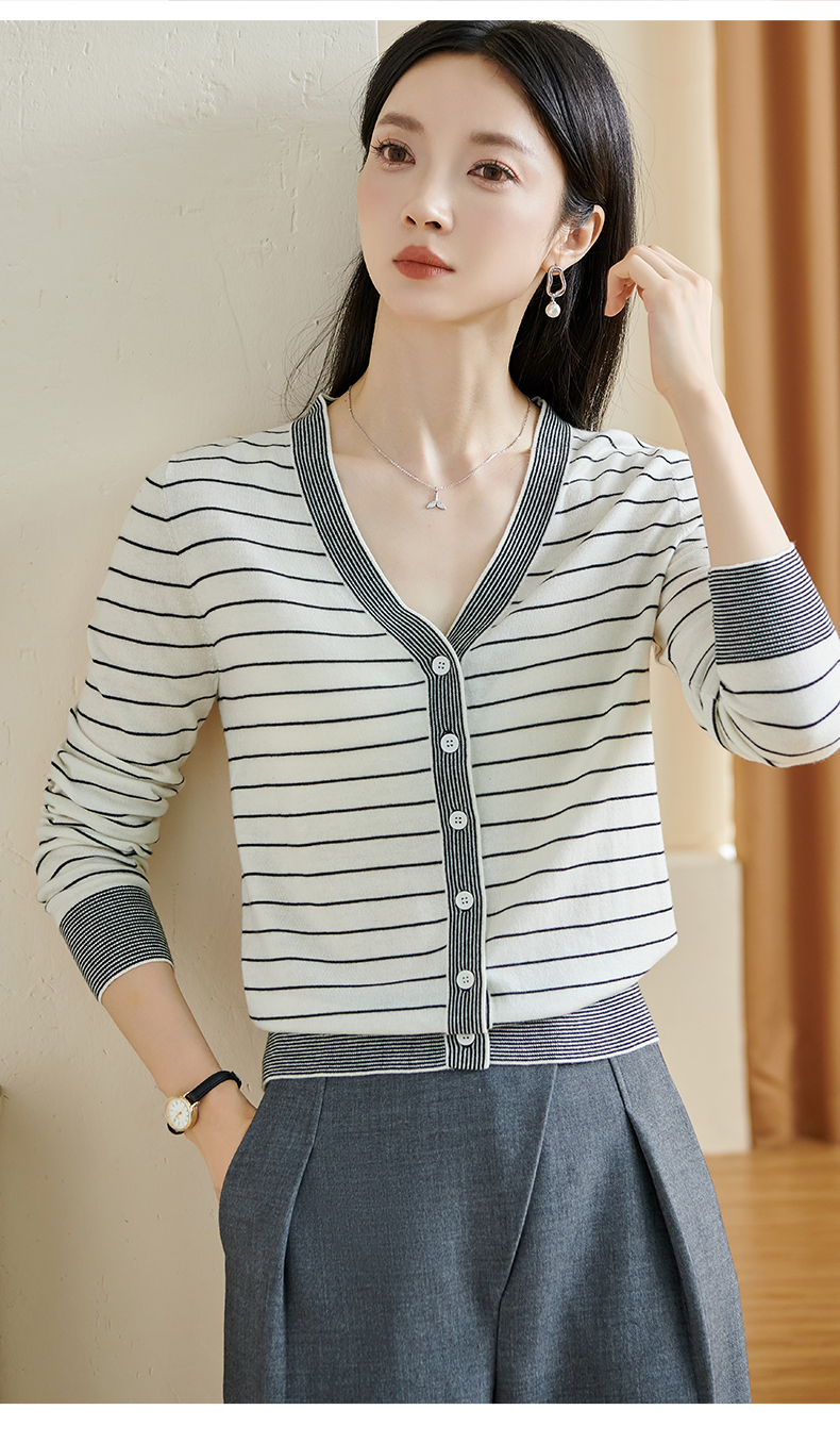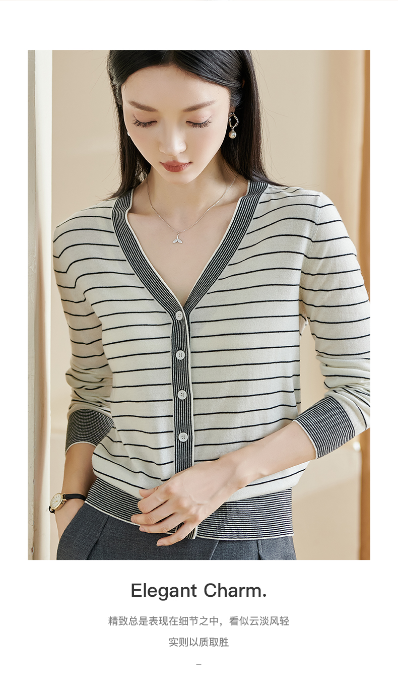 米思阳2026春季新款经典百搭条纹针织衫修身v领纽扣长袖外套2942
