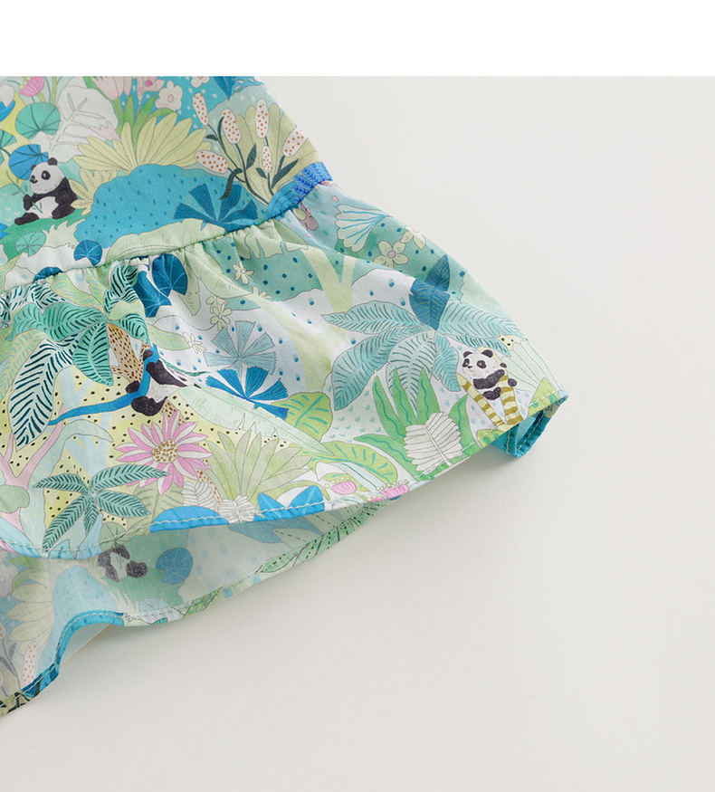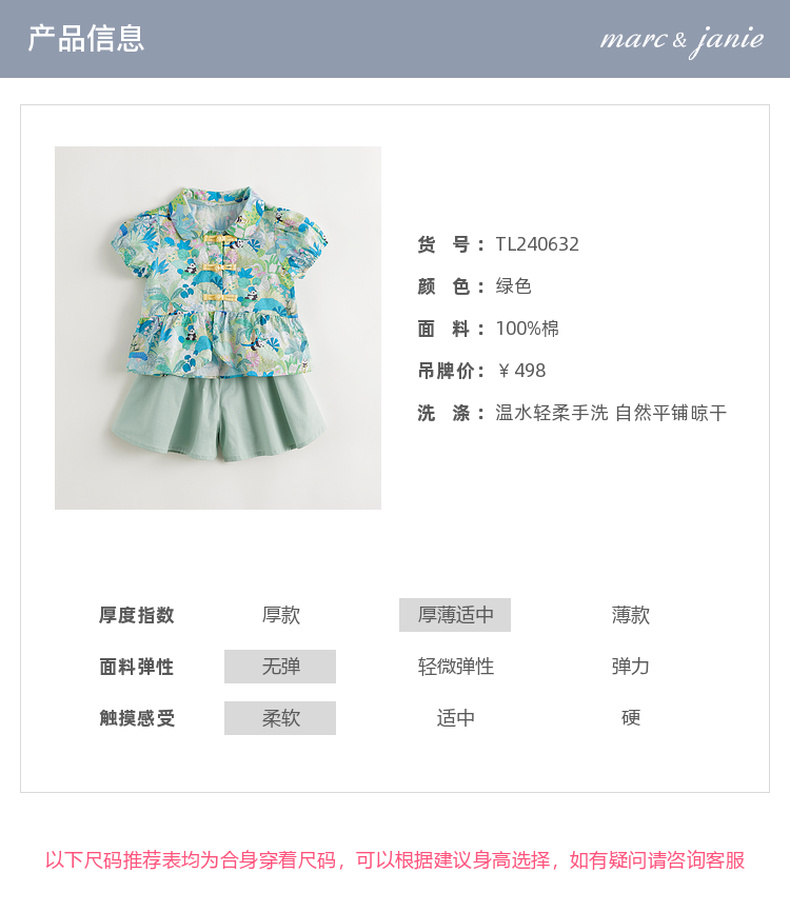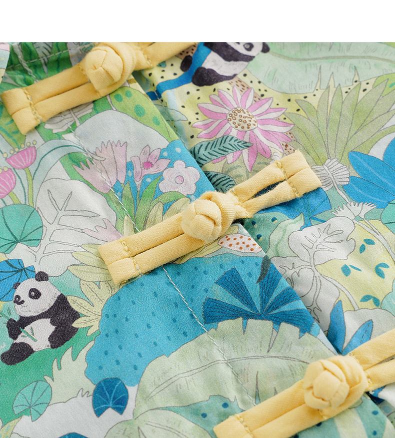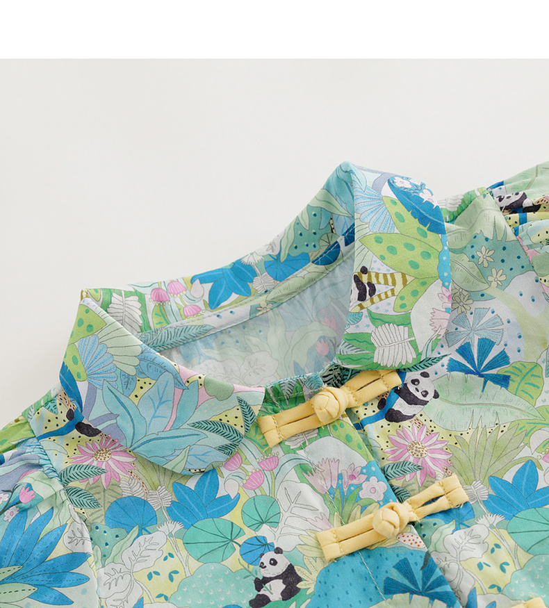 马克珍妮2024年夏装新款 女童熊猫派对新中式纯棉短袖套装 240632