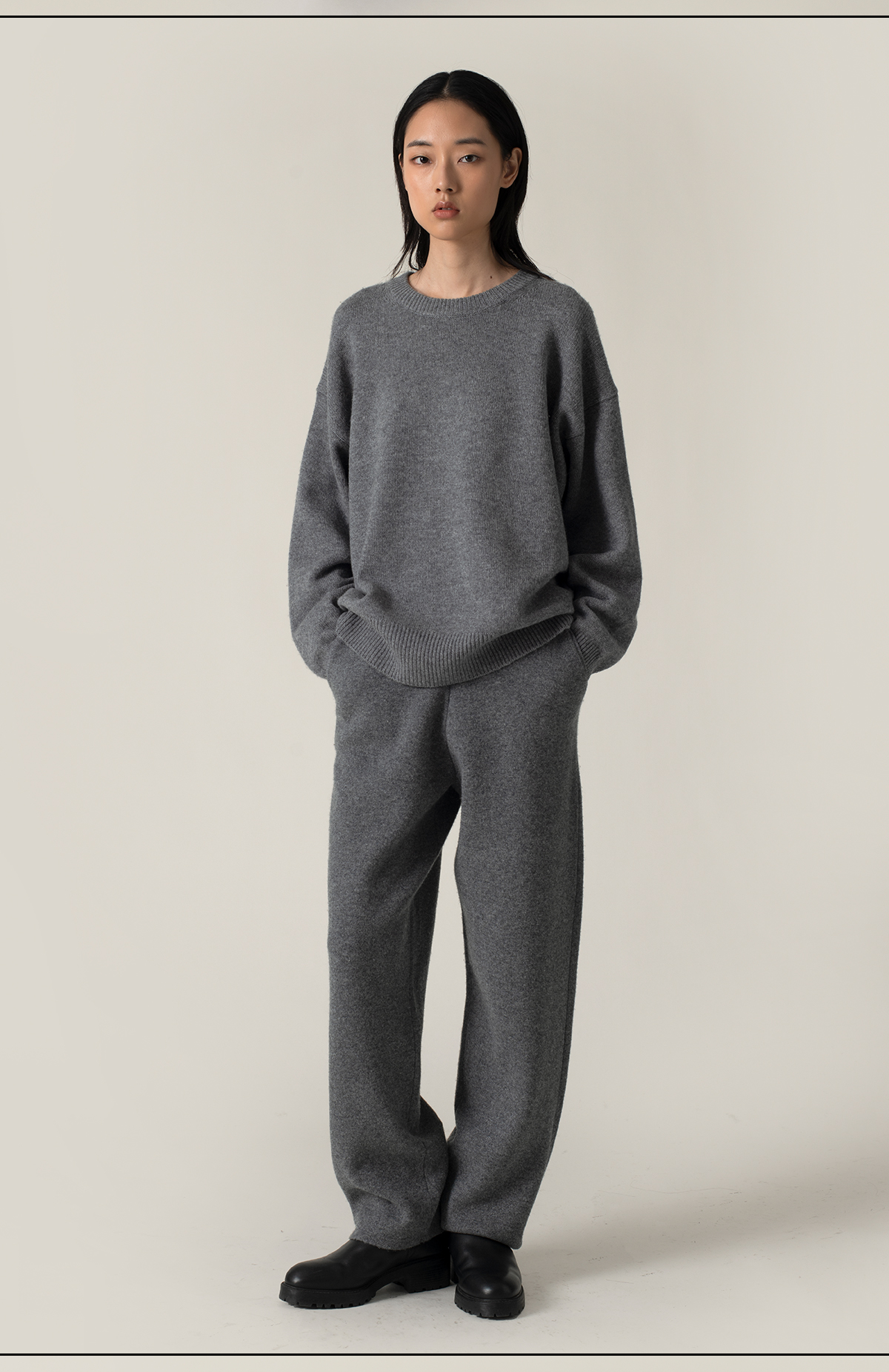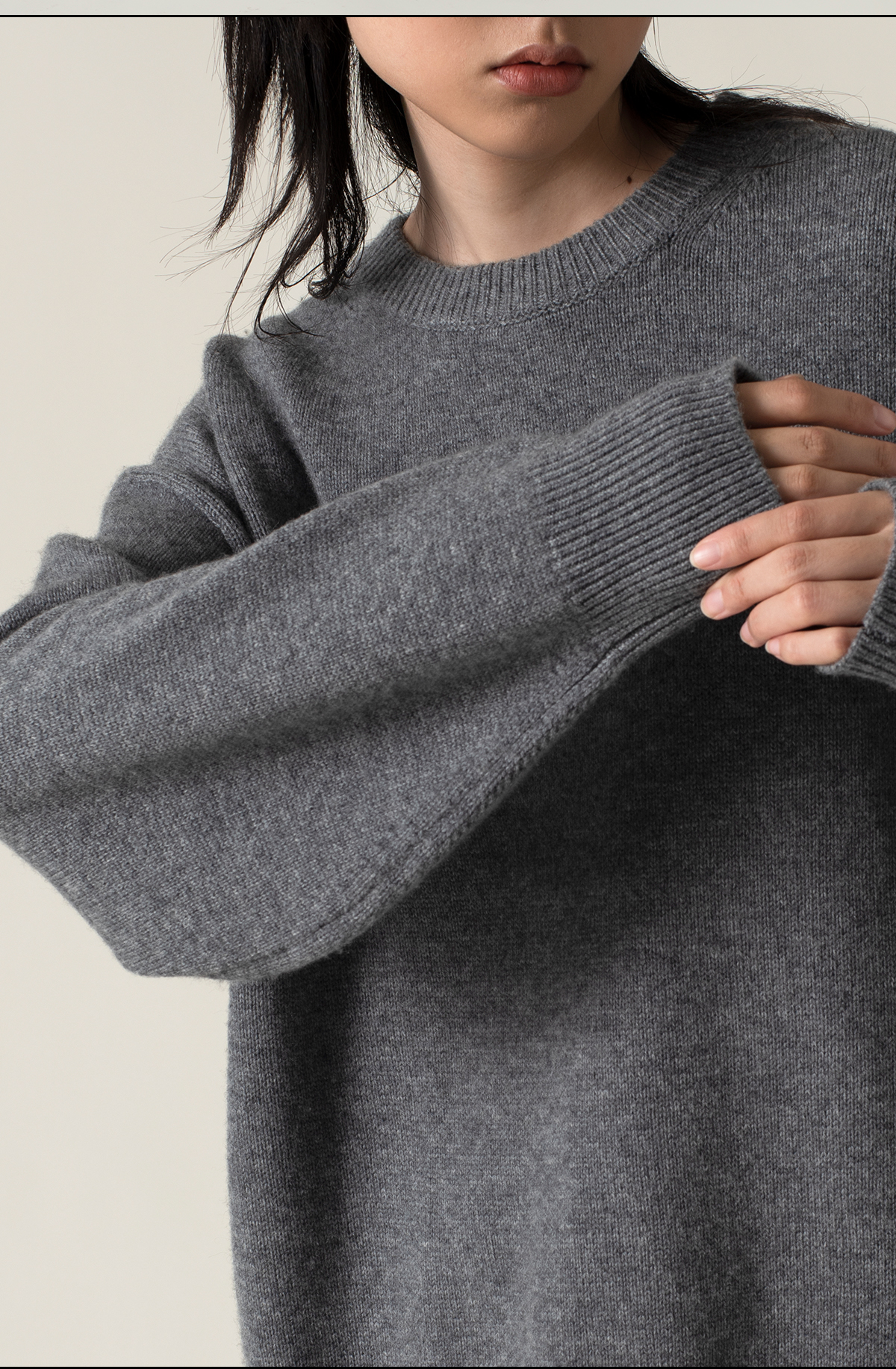 322工房重磅经典羊绒羊毛针织衫女2022秋冬新款圆领慵懒风套头衫