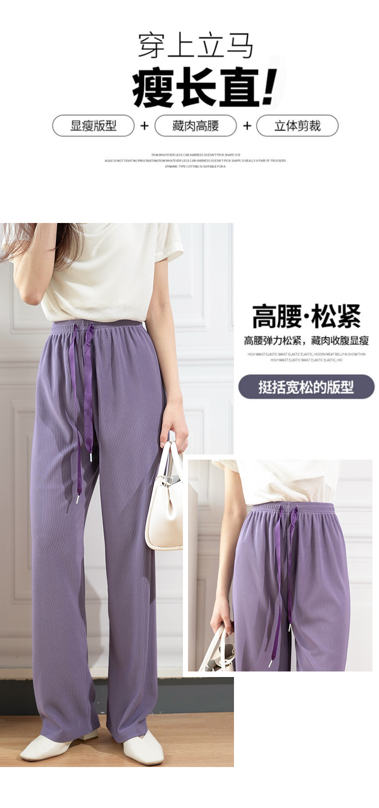 Avann肌理感高腰直筒拖地裤