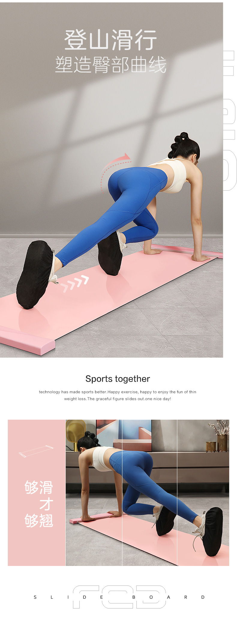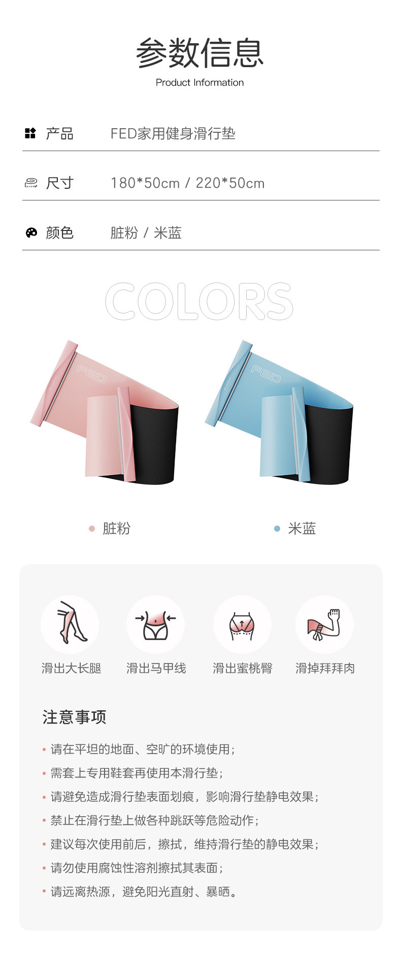 赠独立收纳袋【1张垫子+6种器械】FED飞尔顿家用健身滑行垫 有氧滑行+无氧锻炼 收纳方便 想练就练 室内轮滑训练 速滑滑行板