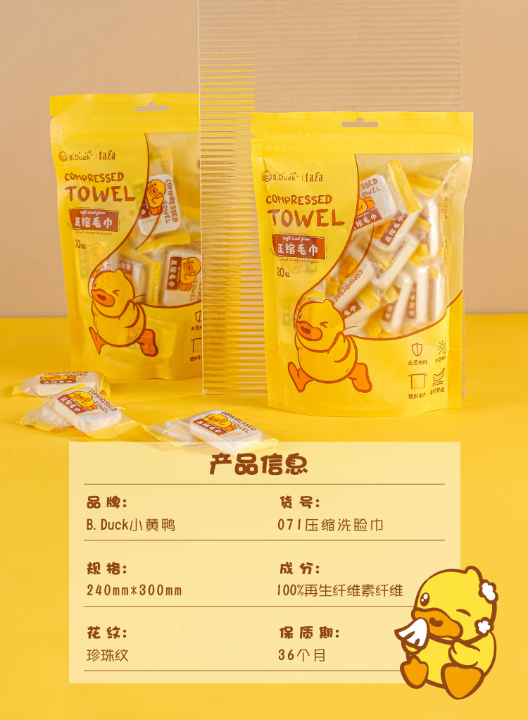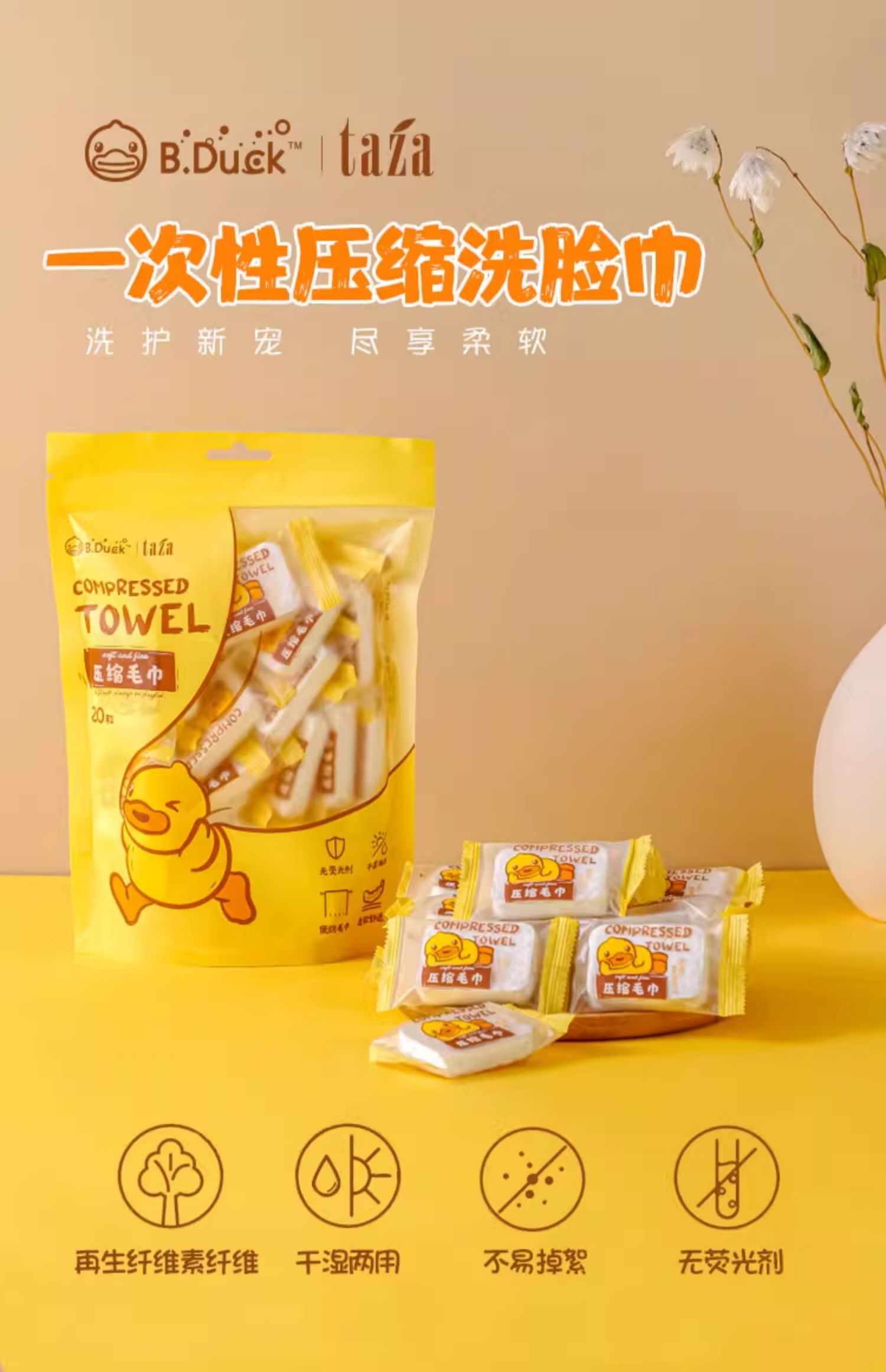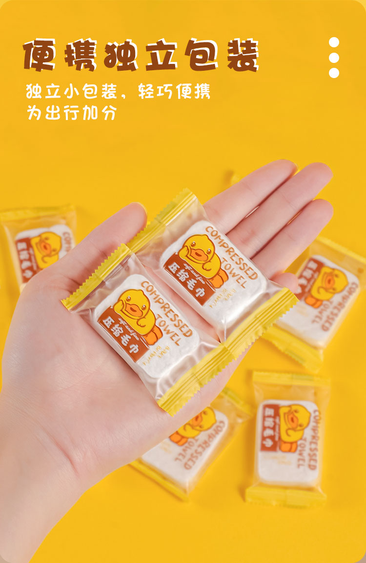 B.Duck小黄鸭一次性压缩毛巾吸水旅行装洗脸巾加厚加大柔软洁面巾