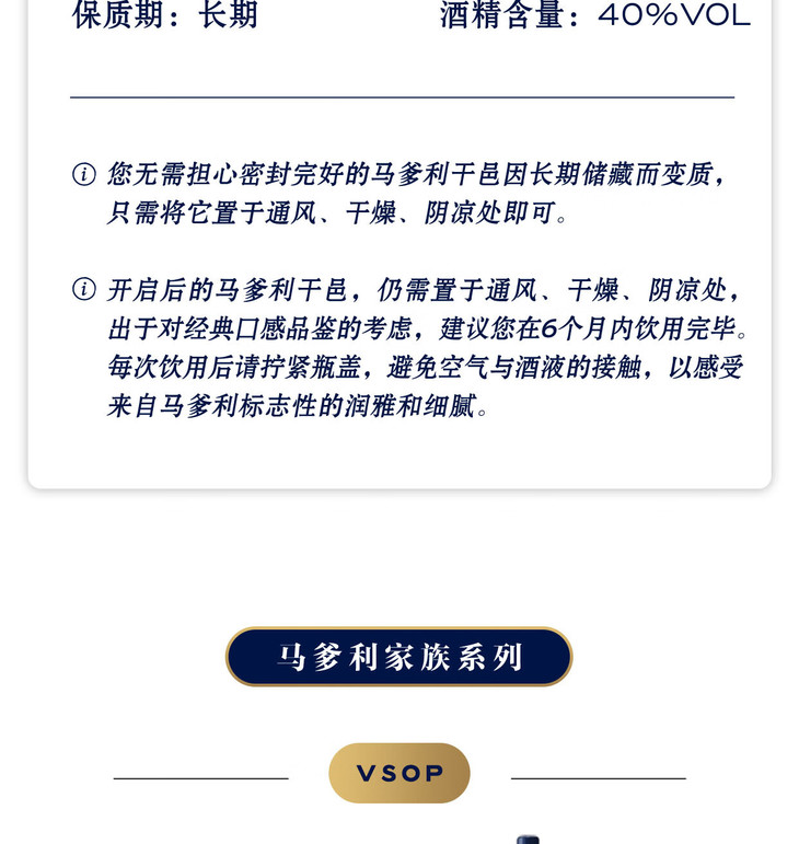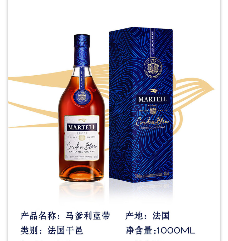 马爹利 蓝带干邑白兰地1000ml/1瓶/2瓶