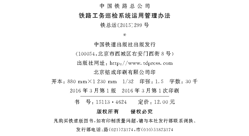 15113.4624铁路工务巡检系统运用管理办法