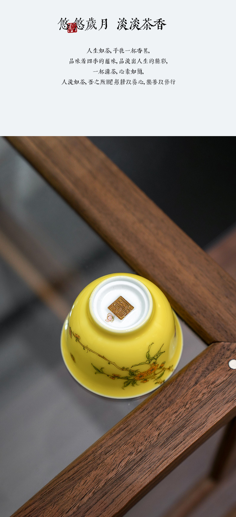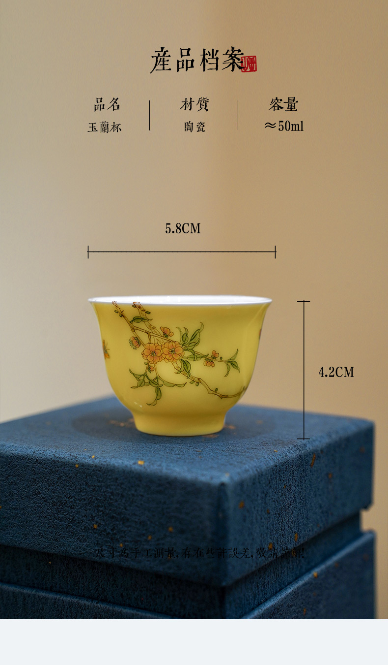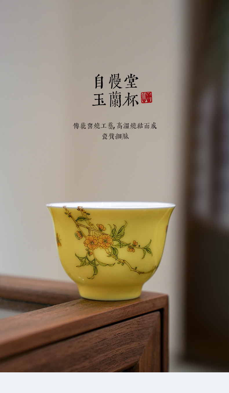 自慢堂 梅花玉兰杯 鹅黄釉 陶瓷茶杯高档个人专用功夫茶杯品茗杯