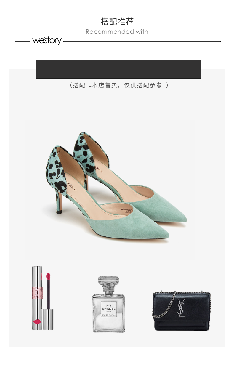 westory2019新款性感尖头高跟鞋细跟豹纹复古少女单鞋W29AH50151