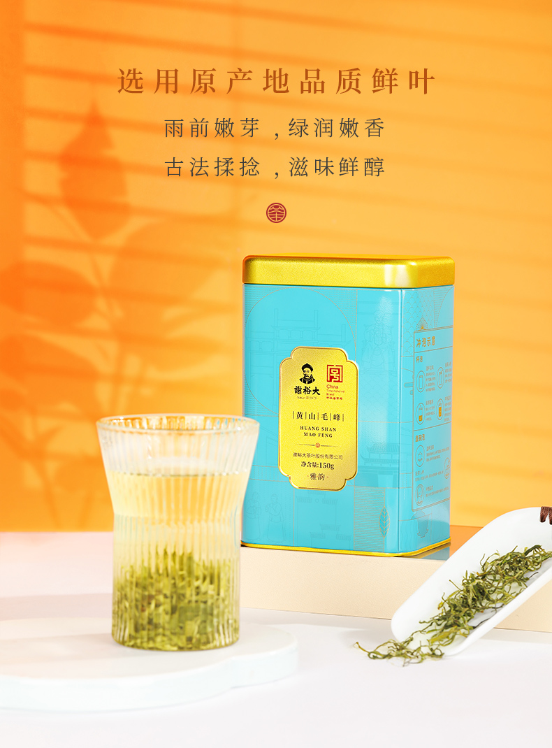 谢裕大 黄山毛峰雨前古法绿茶150g听装茶叶 雨前嫩芽 绿润鲜香 48小时发货