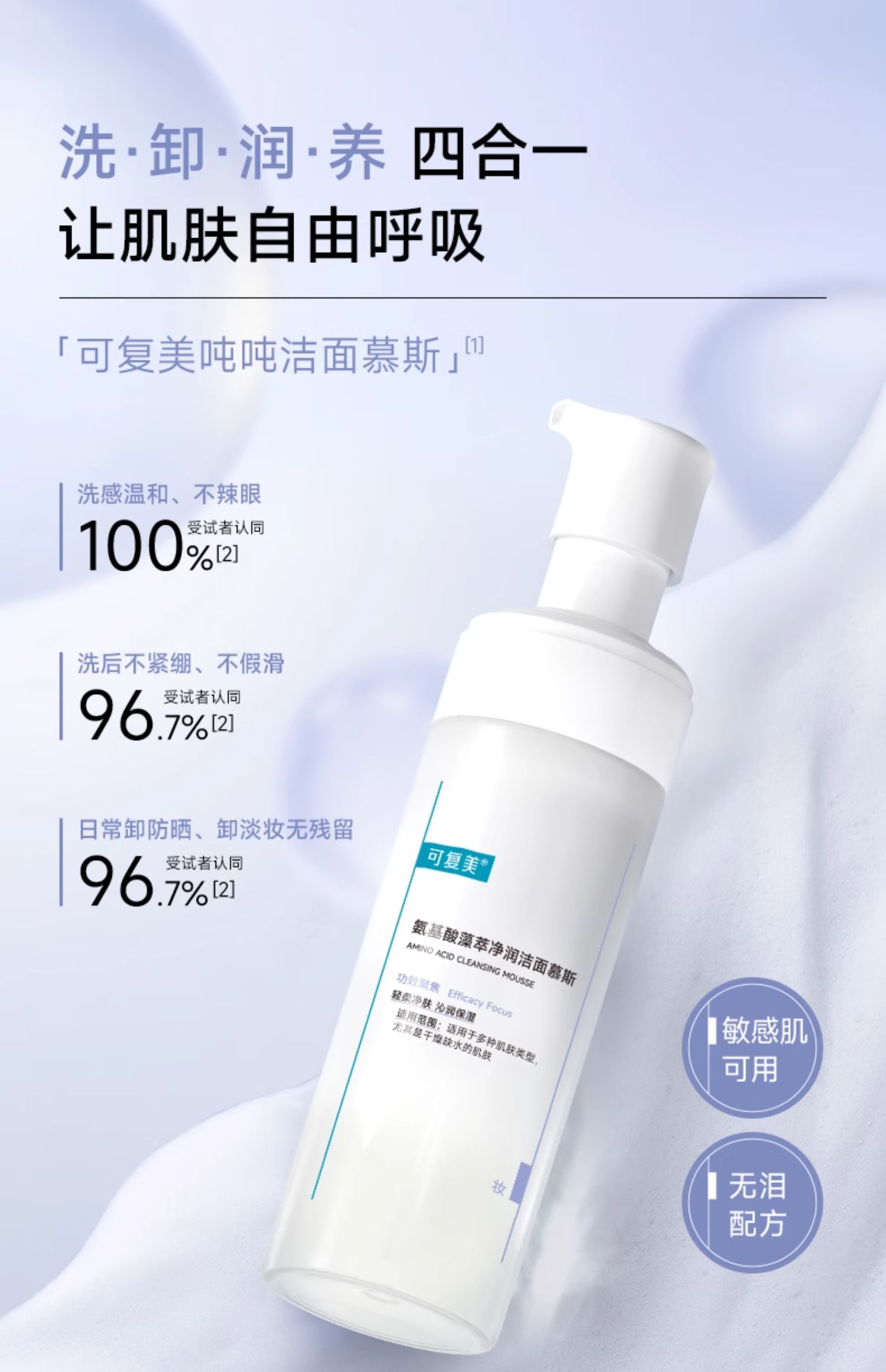 【可复美吨吨洁面慕斯】可复美氨基酸藻萃净润洁面慕斯150ml/瓶