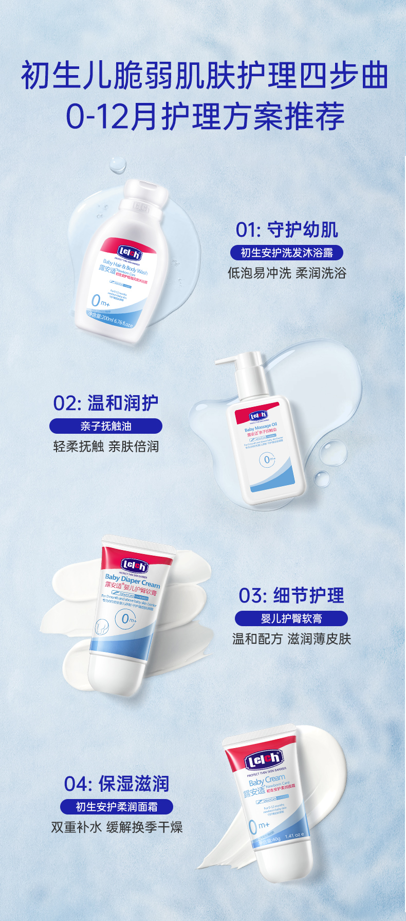 Lelch®露安适,一直致力于研究初生婴儿、婴幼儿、儿童、孕妇及新任妈妈们幼嫩的皮肤,研制出合适的健康护理产品。 日夜分护露安适,日夜尊享爱马仕。