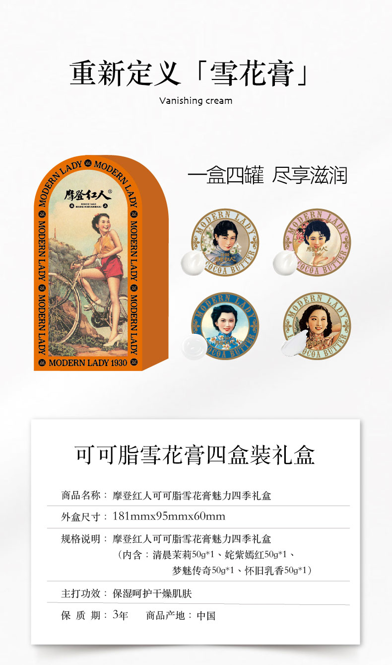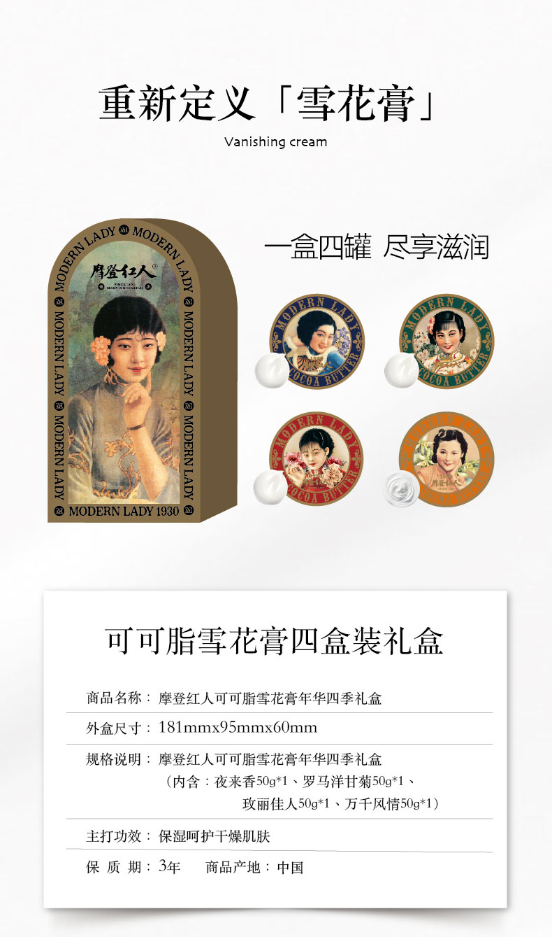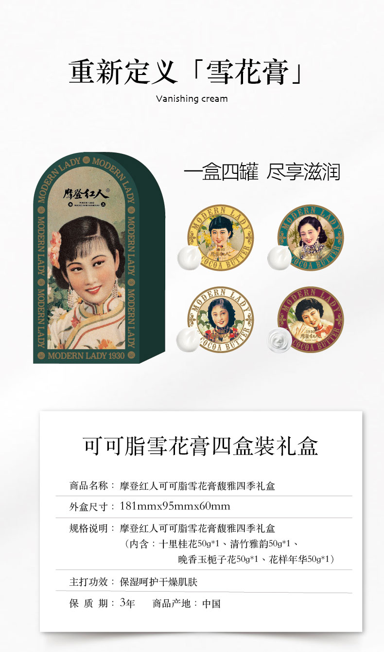 摩登红人可可脂四季护手霜面霜礼盒四盒装生日节日老上海伴手礼