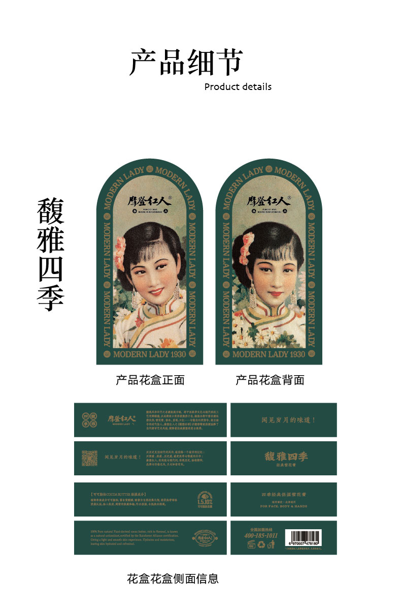 - Modern Lady 摩登红人作为时尚跨界品牌,源承30年代上海滩名媛致美方略,将中西方文化交辉,完美演绎了海派摩登的复古主义美学。