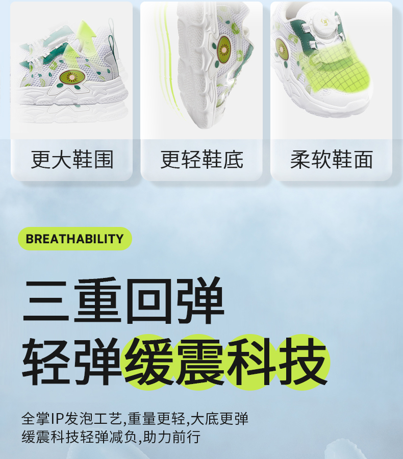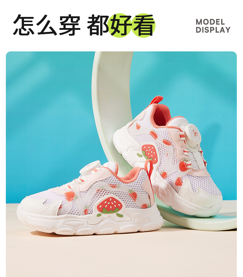 卡特兔儿童运动鞋男童2023秋季网眼透气旋钮篮球鞋女童跑步鞋