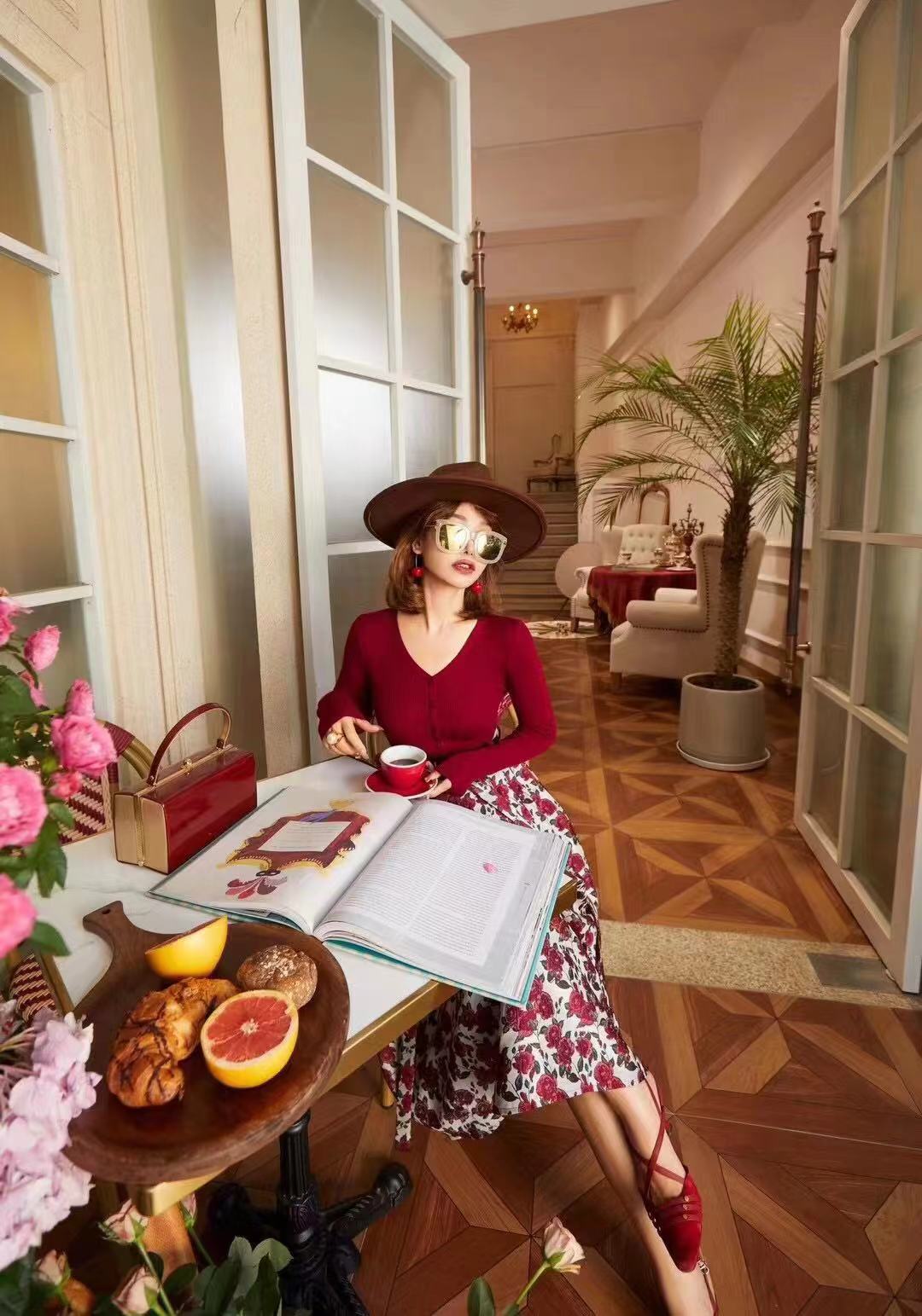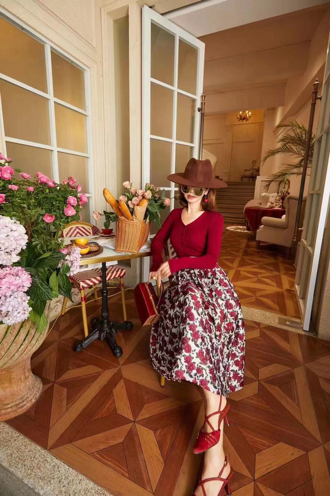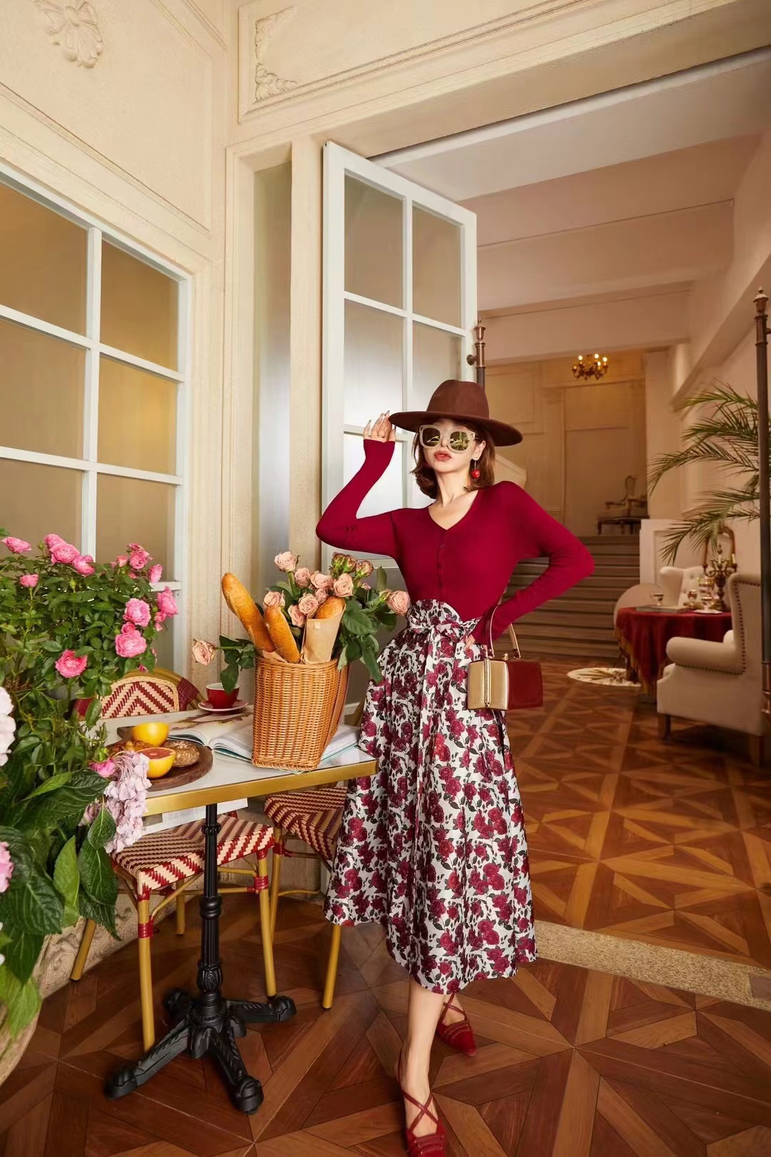 70951 # 早春款 贵气轻奢重工刺绣 复古精致高级半身裙 腰间是花苞设计 设计经典耐看 一眼心动 重工刺绣工艺 花型立体生动 红 S~ⅩL码