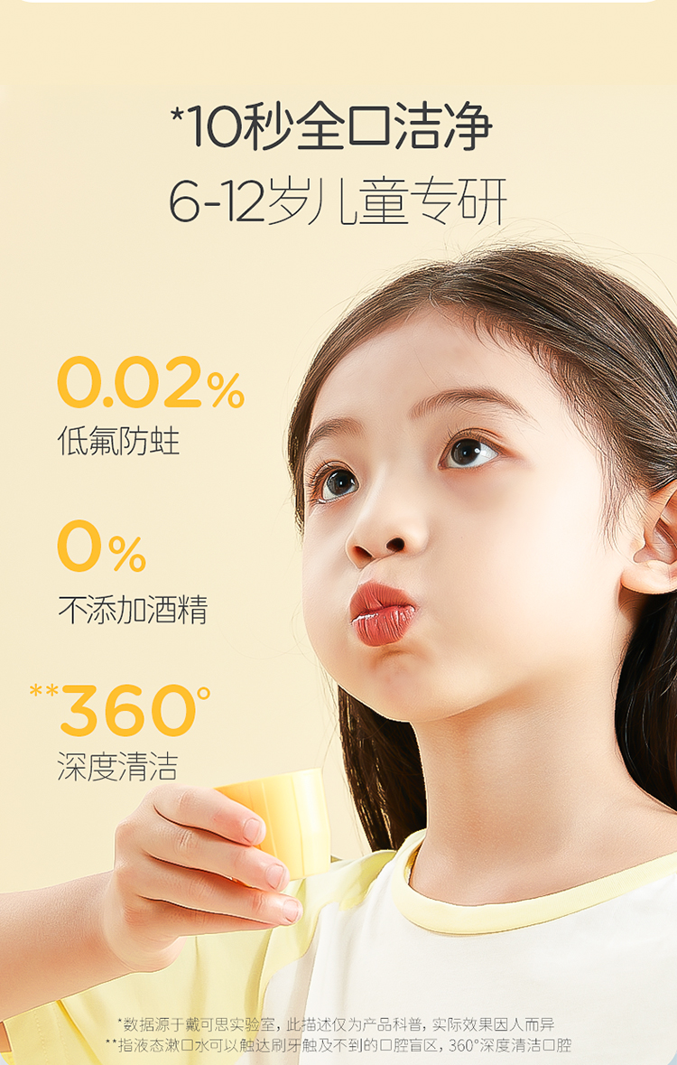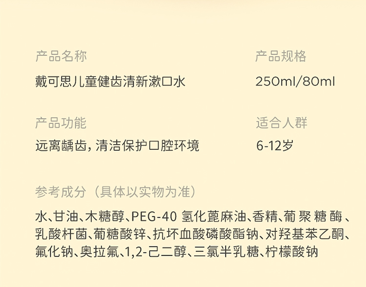 戴可思儿童健齿清新漱口水奥拉氟防蛀6-12岁温和去口气♥