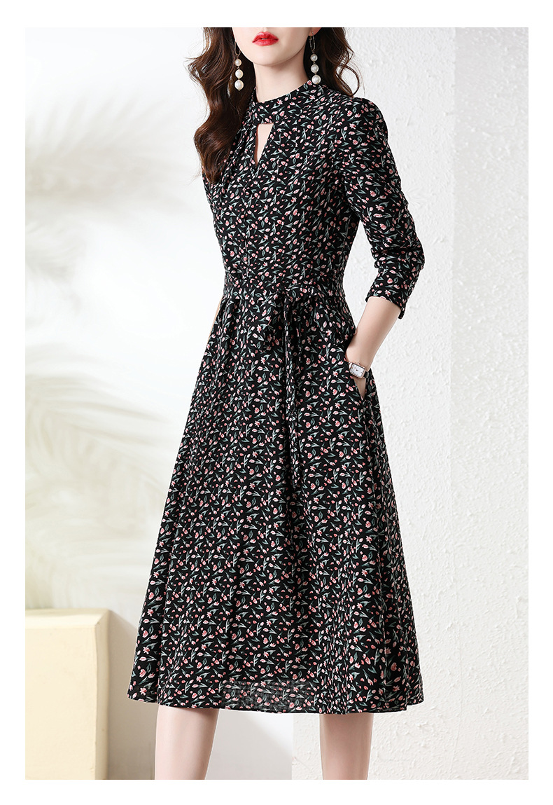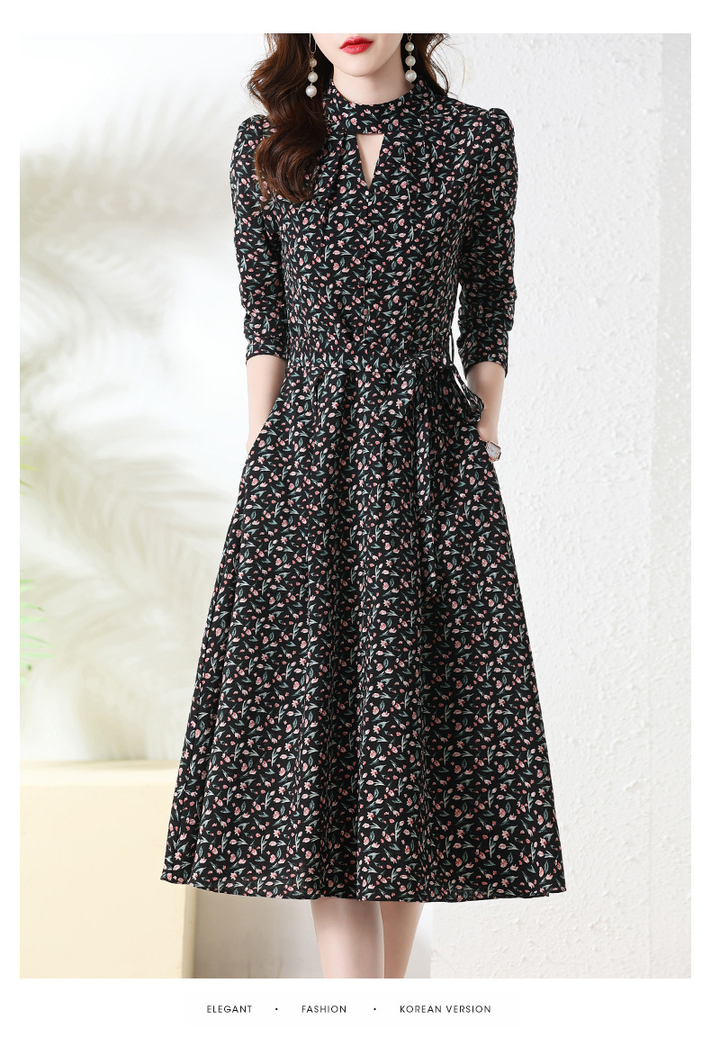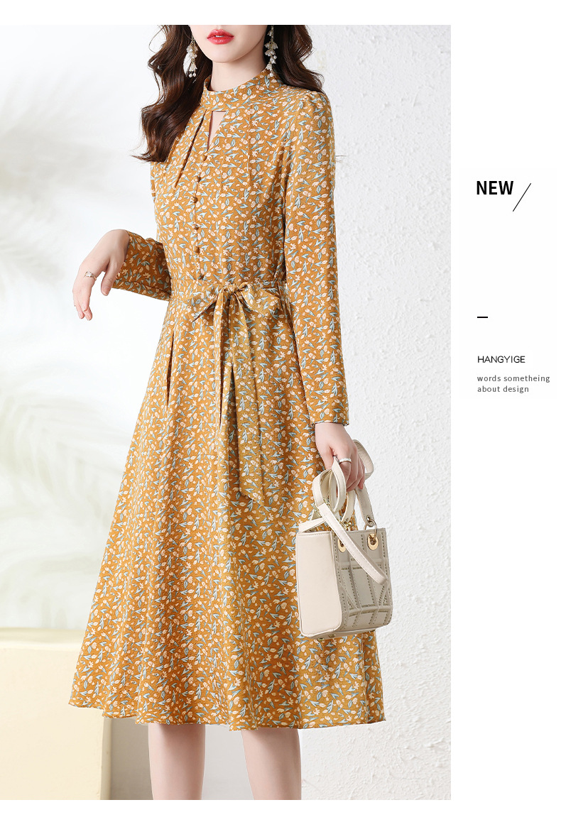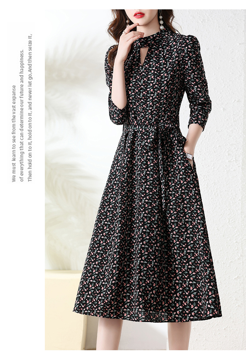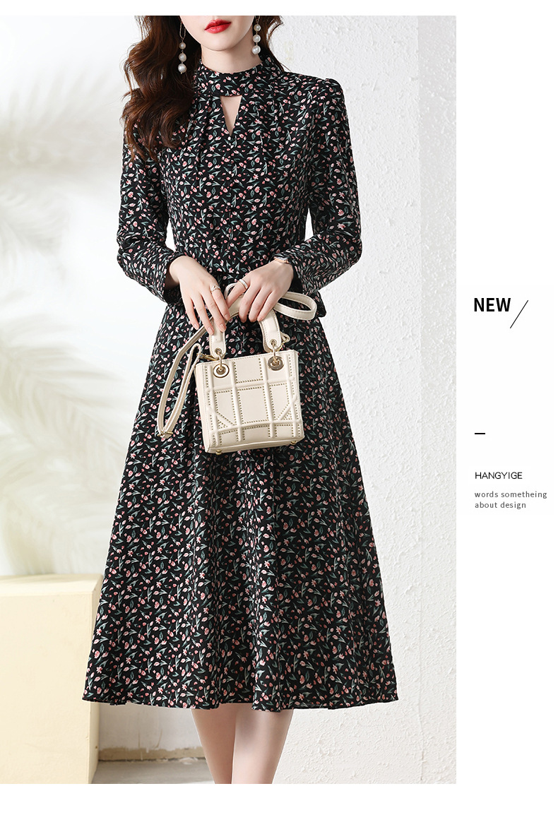 长袖连衣裙,新款气质显瘦别致碎花裙HR-BX6802