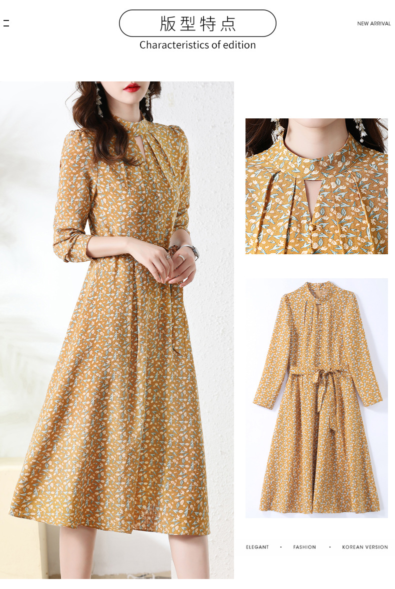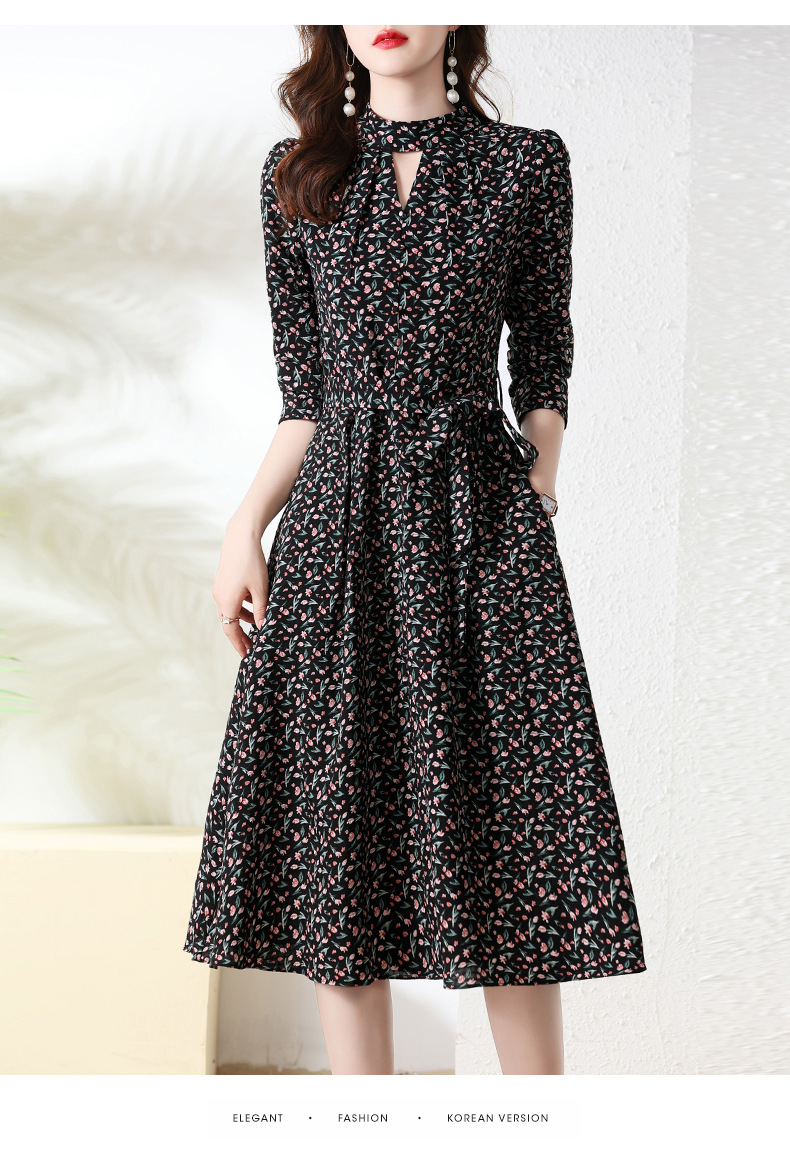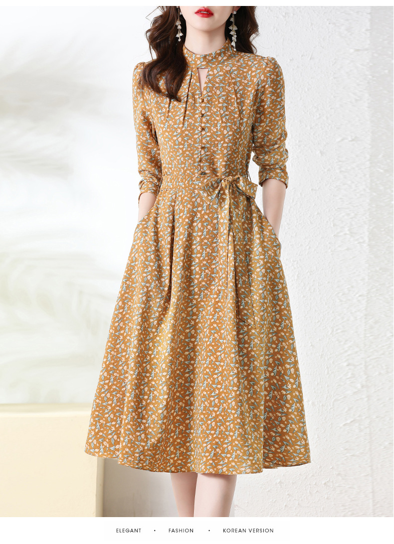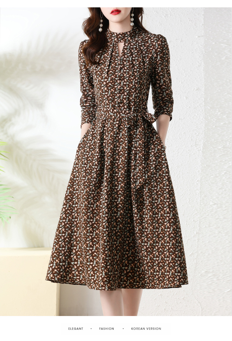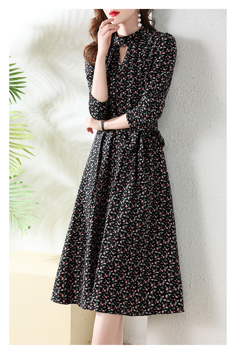 长袖连衣裙,新款气质显瘦别致碎花裙HR-BX6802