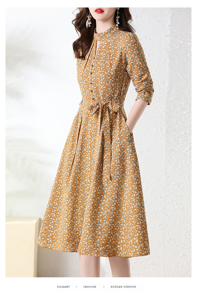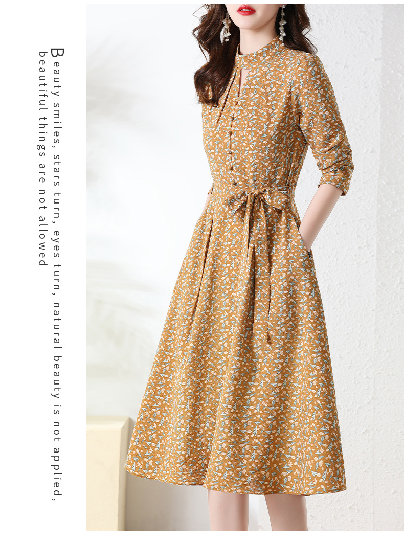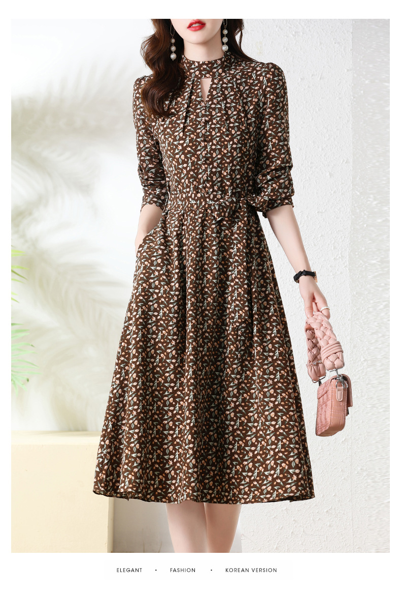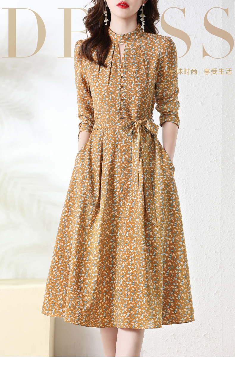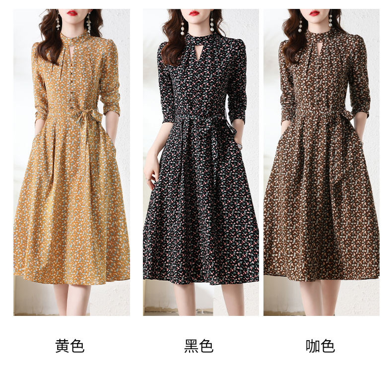 长袖连衣裙,新款气质显瘦别致碎花裙HR-BX6802