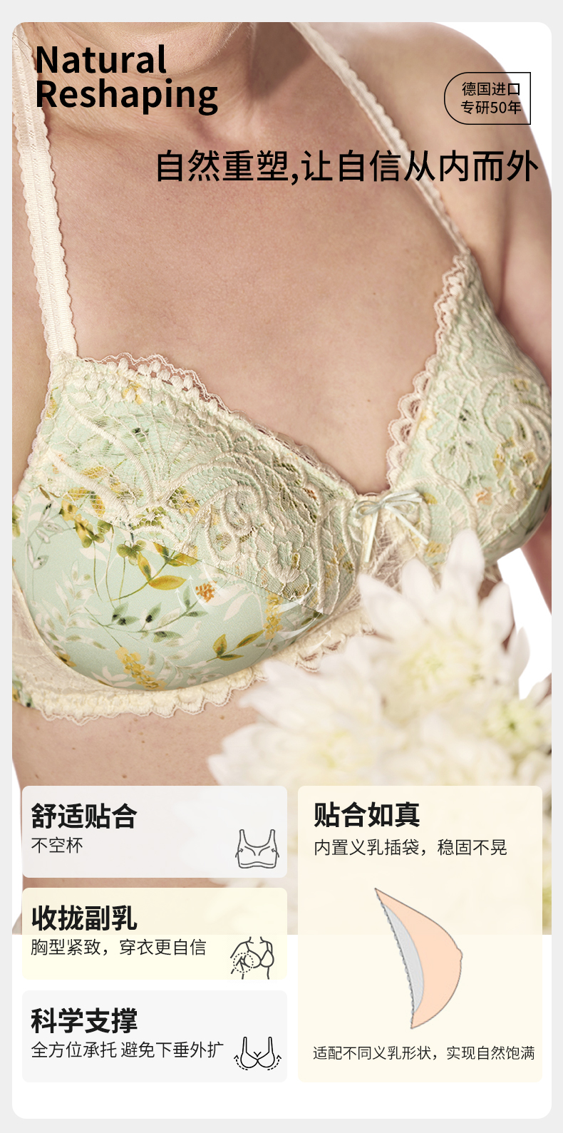 【优惠详情咨询客服】Amoena爱蒙娜德国进口义乳文胸乳腺术后专用胸罩无钢圈内衣 45089