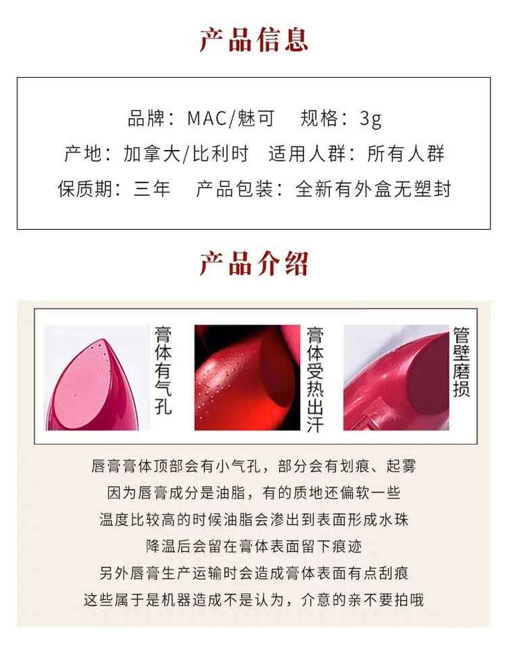 MAC/魅可断货王口红 唇膏哑光滋润 !气质显气色