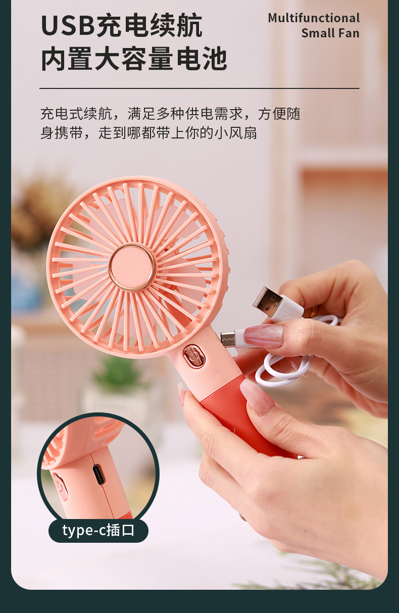【简约拼色立式风扇】迷你家用USB台式电风扇 办公室三档风手持电风扇