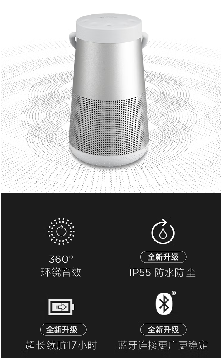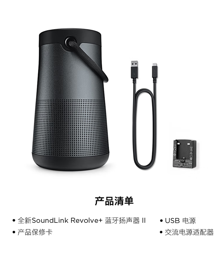 BoseSoundLink Revolve+ 蓝牙音响 II 黑色 360度环绕防水无线音箱电脑桌面音响 扬声器 水壶二代