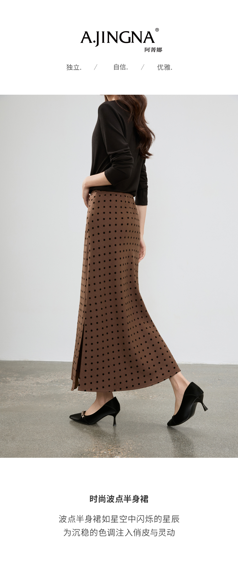 【微A廓形】阿菁娜秋季新款波点半身裙微A廓形显瘦侧开叉设计通勤日常百搭F30D213001