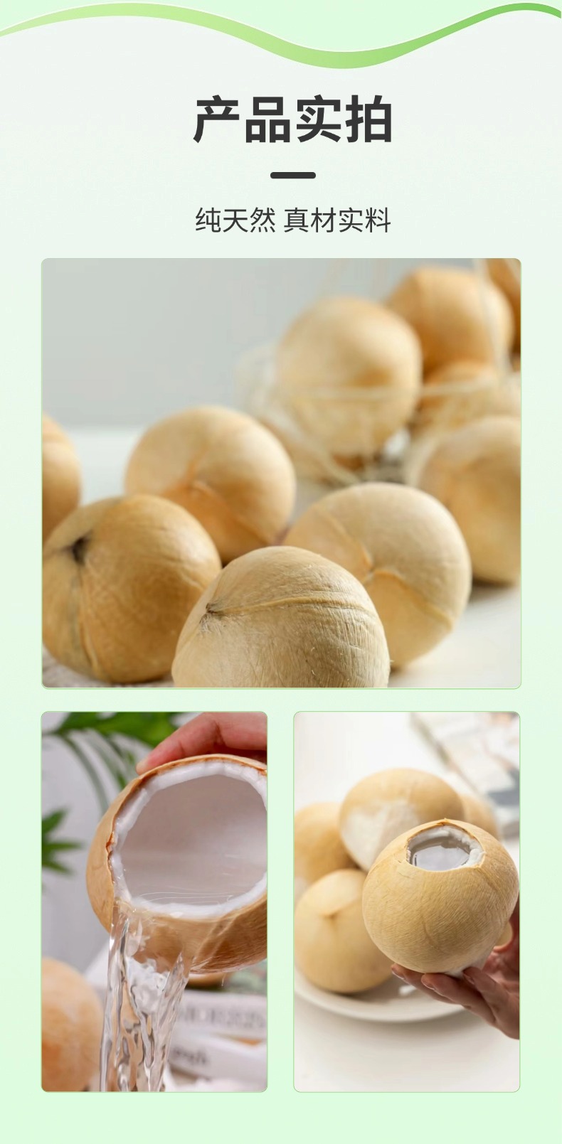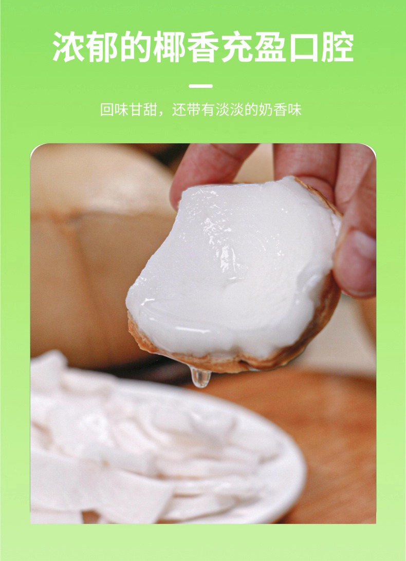 【产品亮点】清甜爽口解渴,椰香浓郁,果肉厚实,真材实料纯天然