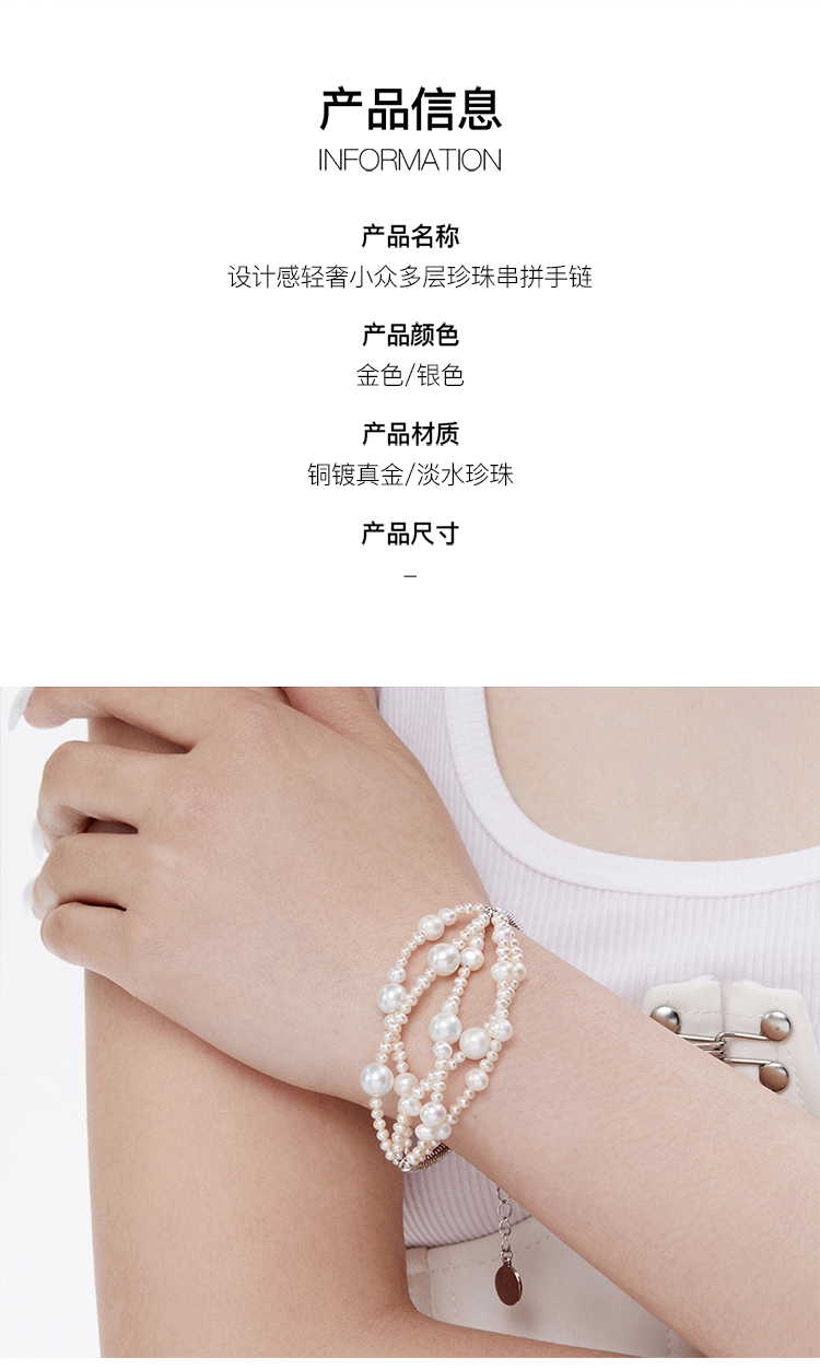 lost in echo 设计感轻奢小众多层珍珠串拼手链 商品图2